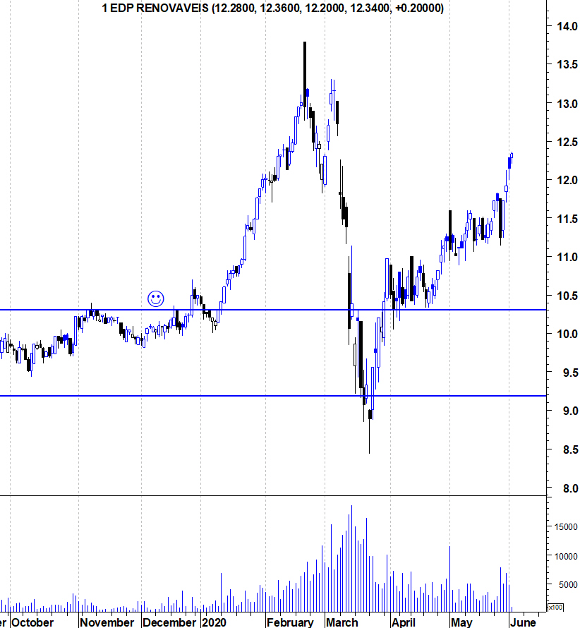 A EDP Renováveis é um caso de sucesso na Bolsa portuguesa e é o mais longo “Bull Market” em vigor entre as acções do PSI20. Mesmo a queda brutal e rápida provocada pela pandemia nos mercados foi praticamente recuperada, mostrando a força da acção que vive um “Bull Market” há 8 anos, algo raro na nossa Bolsa.