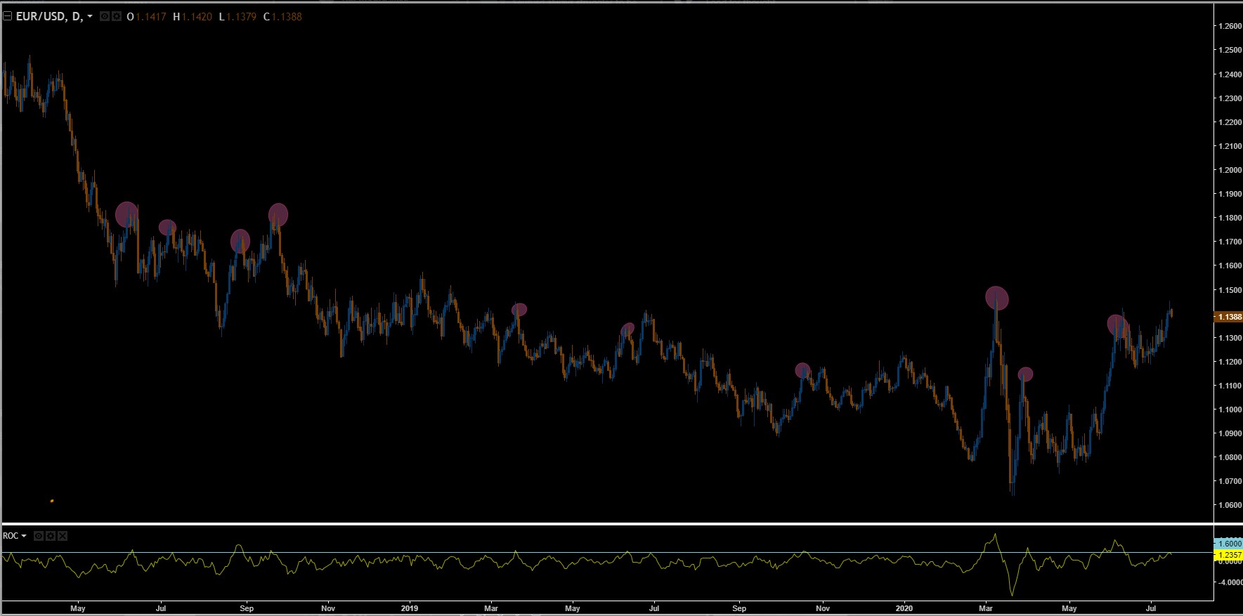 Fun fact no EURUSD e é um dos meus alertas principais para venda, é o facto do mesmo não conseguir estar acima do ROC >1.60 por muito tempo.