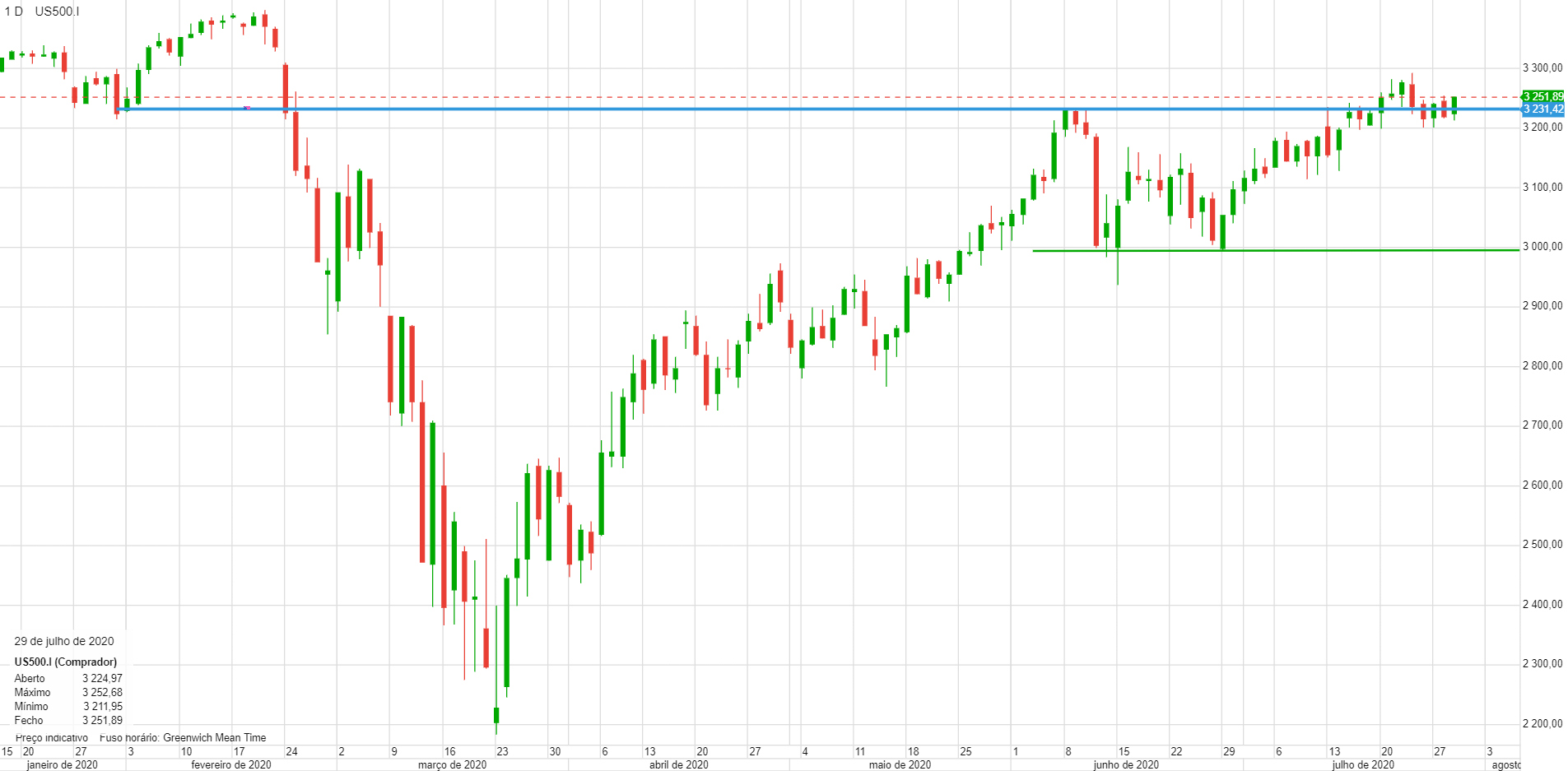 O cauteloso - Espera por uma quebra clara dos 3225 para entrar longo, com objectivo nos 3400 (novos máximos), ou uma quebra dos 3000, para entrar curto com objectivo nos 2800.