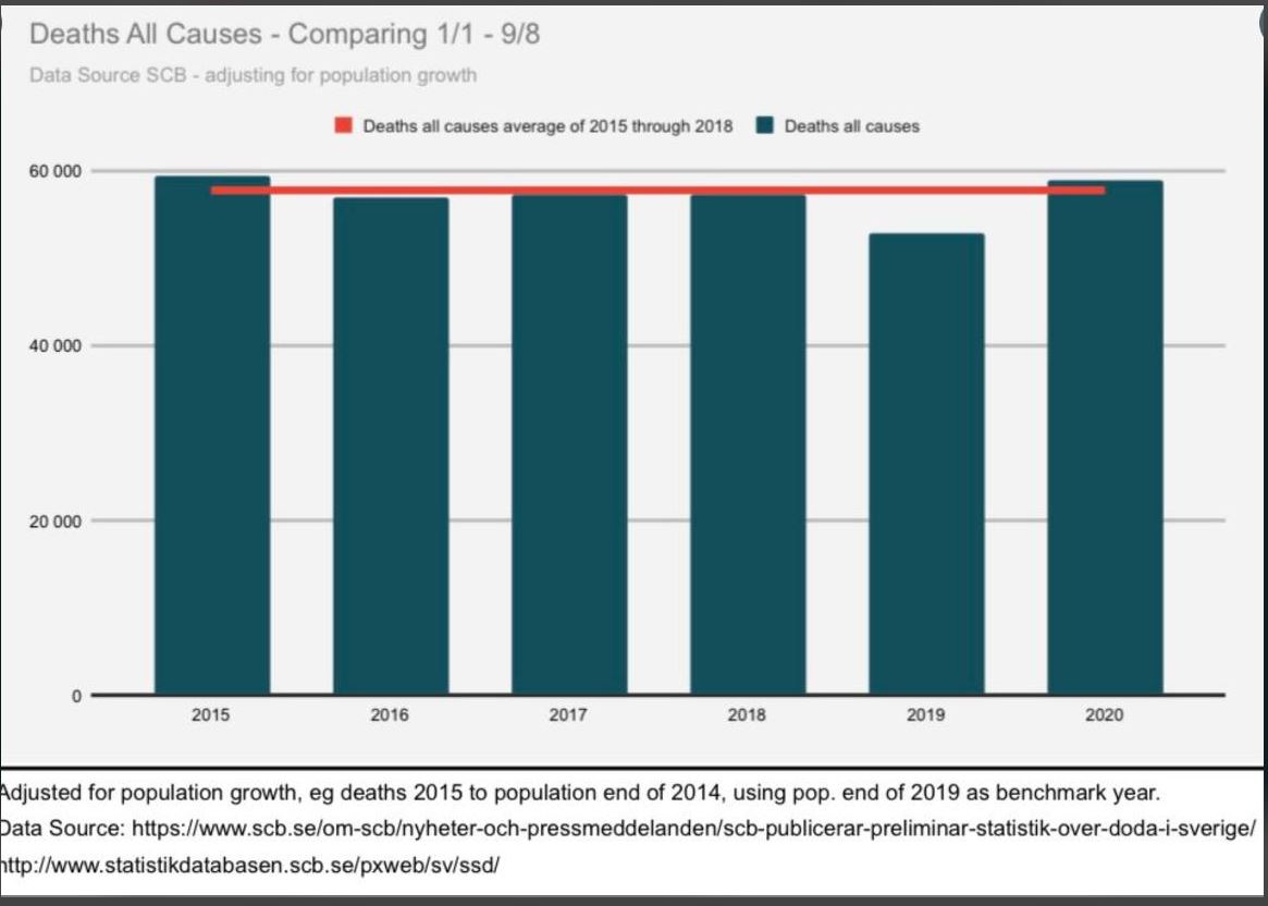 É inegável que o Covid mata. Mata mais os idosos (que sem covid morreriam uns meses ou poucos anos depois), mas mata. A questão aqui é contrapor a comunicação social e os profetas da desgraça que diziam e dizem que na Suecia sem as medidas de confinamento que vigorou por todo o lado foi uma hecatombe.