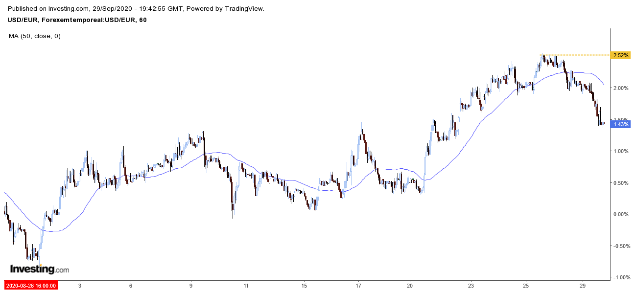 Porque o USD index perde quase 1% na semana, semelhante ao ganho do EUR/USD.