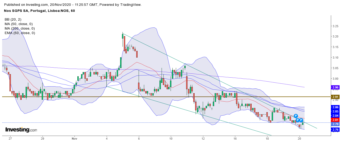 Apesar das duas últimas semanas terem sido excelentes para a Bolsa portuguesa, a Nos não conseguiu acompanhar esse movimento, continuando a sua trajectória descendente. Mais um sinal de fraqueza relativa para a acção.