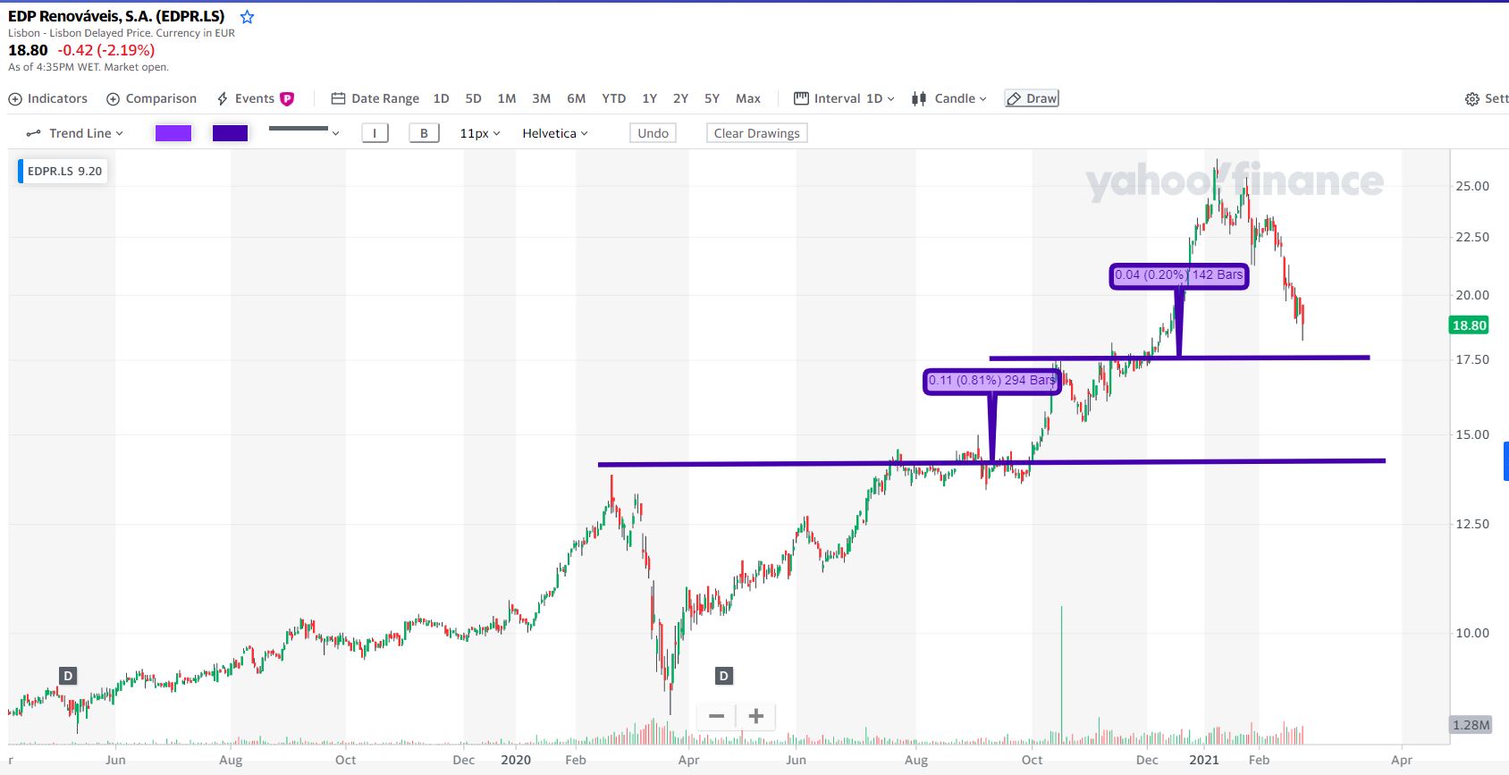 devia reagir aqui nos 18.50€.