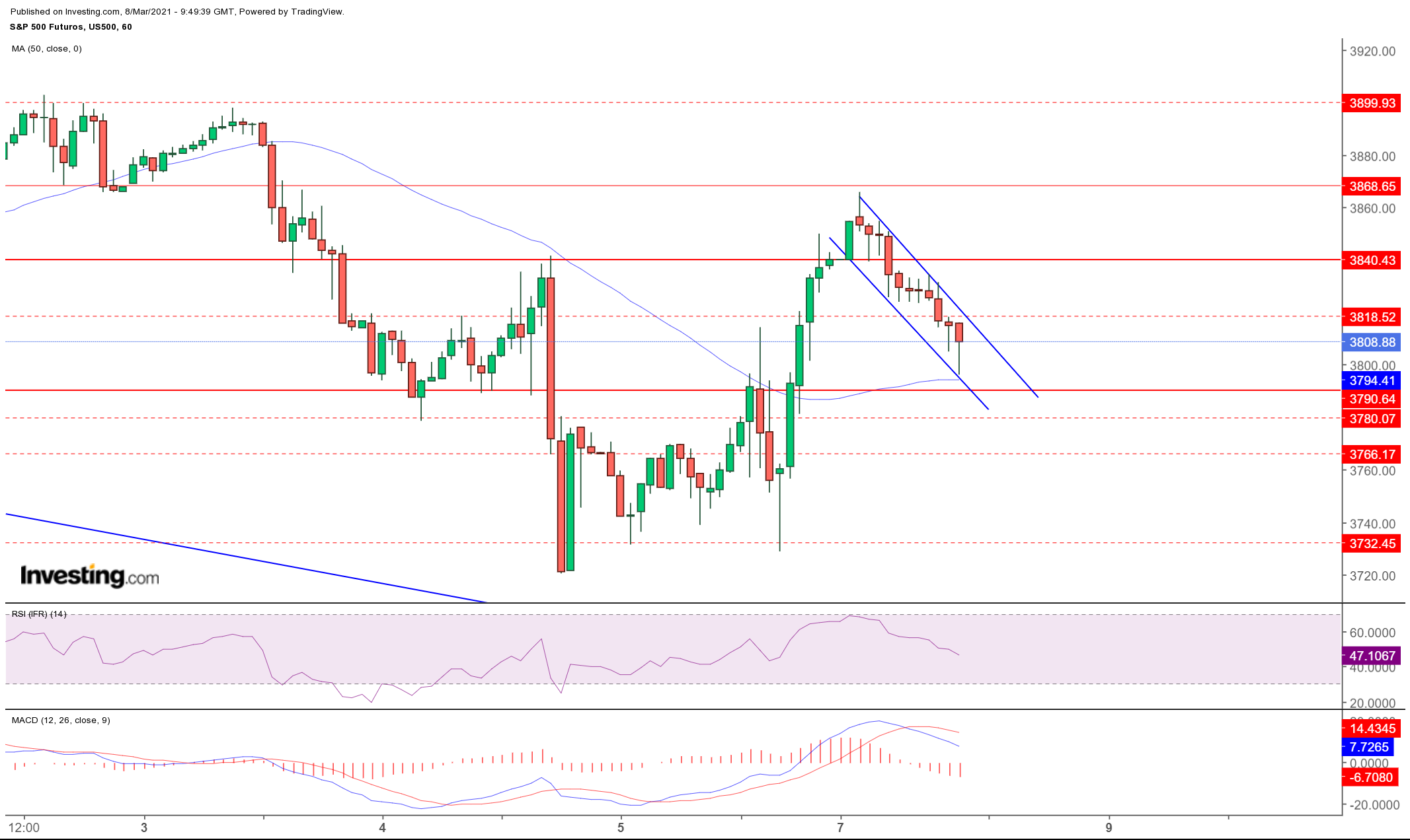 Devo também dizer que não tenho uma experiência diária com o SP500. Analiso essencialmente o Nasdaq 100.