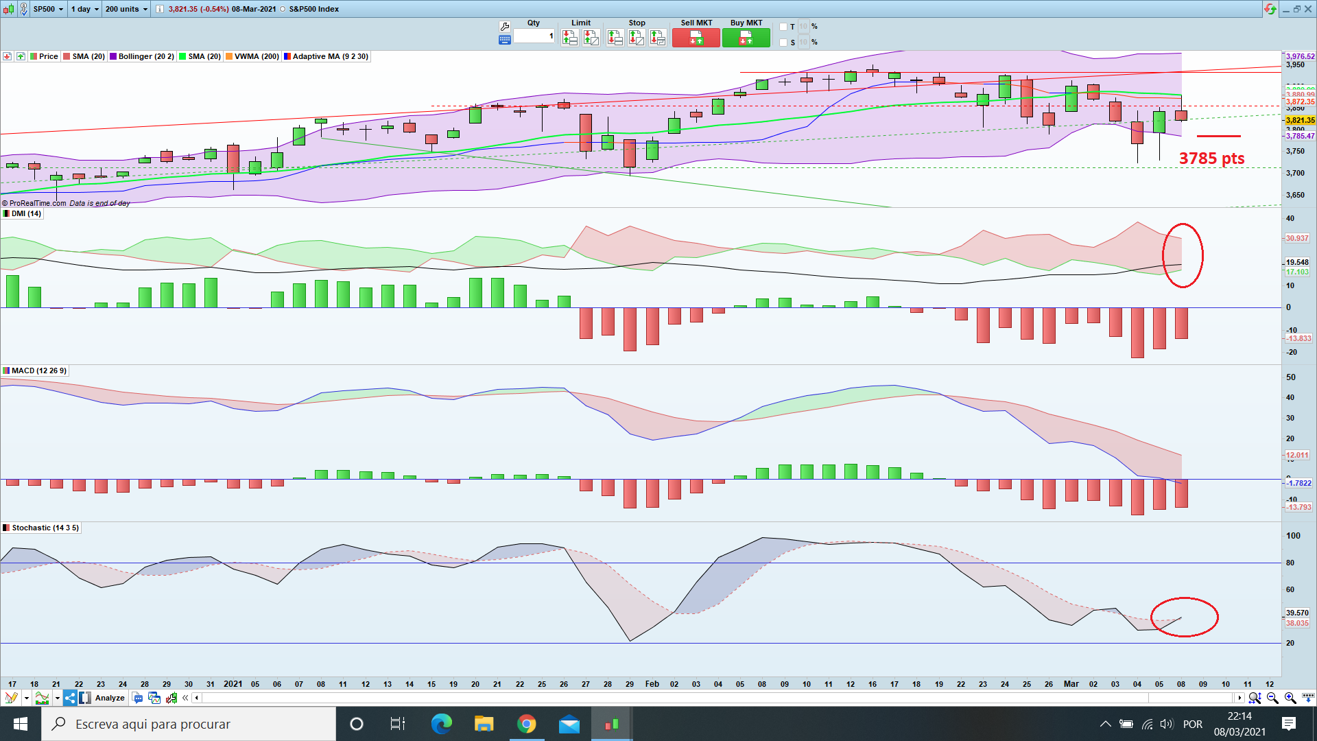 Take profit nos max de hoje 3875 pts. Zona que já se viu ser dura, e que irá até aos 8900 pts.