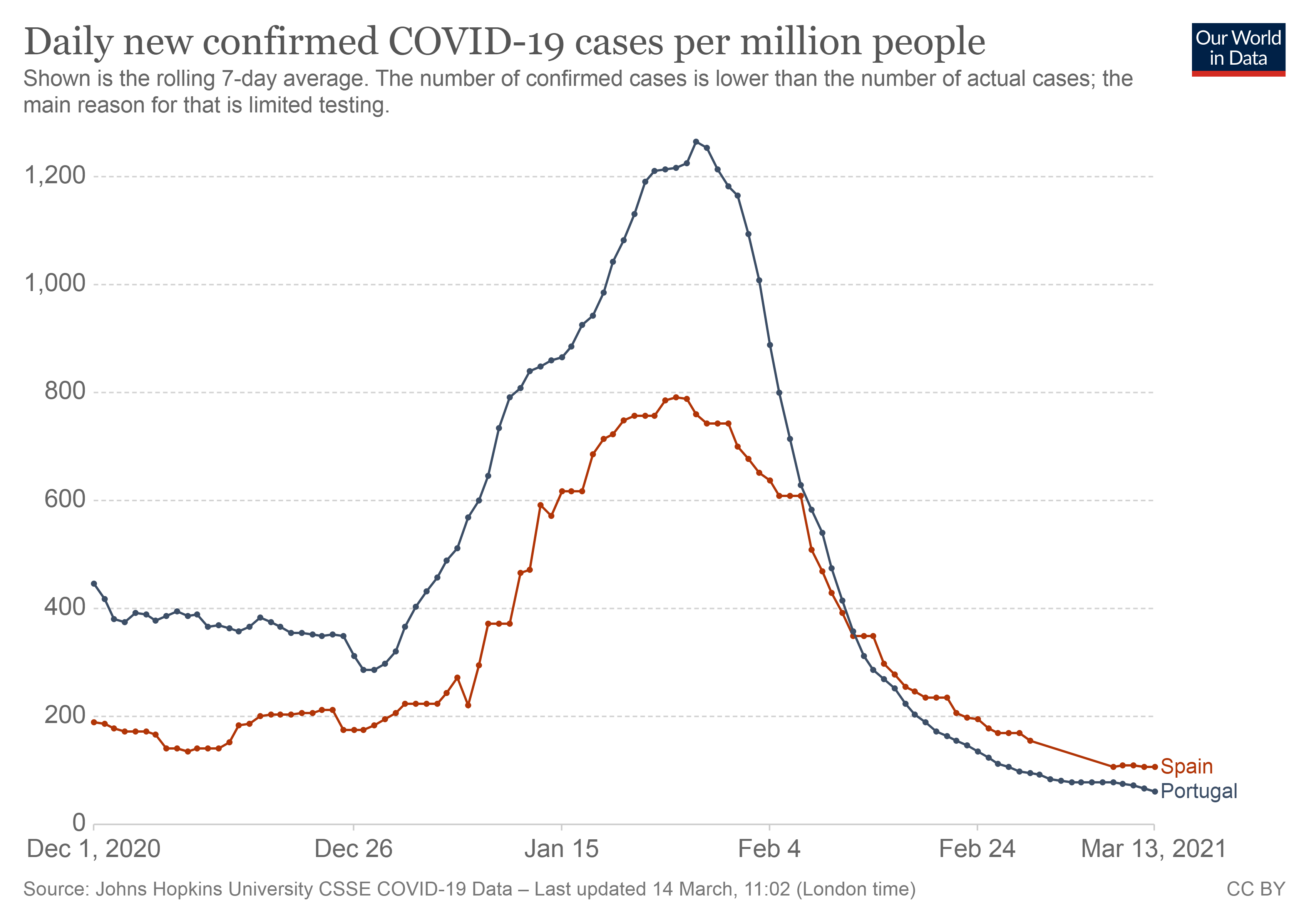 Portugal e Espanha tiveram evolucoes semelhantes desta vaga com medidas diferentes, e medidas essas adoptadas em alturas diferentes. Deve ter sido o lockdown Portugues que fez cair os casos em Espanha.