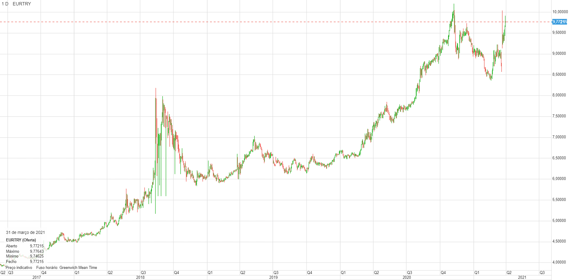 Onde se pode ver o comportamento da lira, Turquia?
