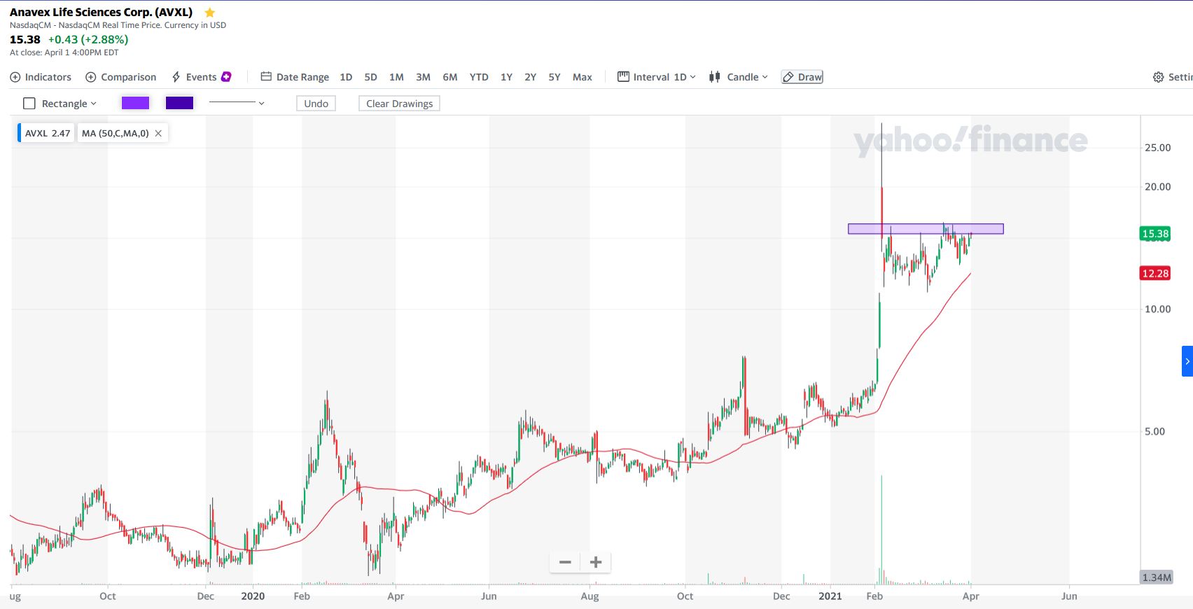 e) comprar se virmos uma quebra forte da zona dos 15.50$, com volume interessante (buy the breakout play).