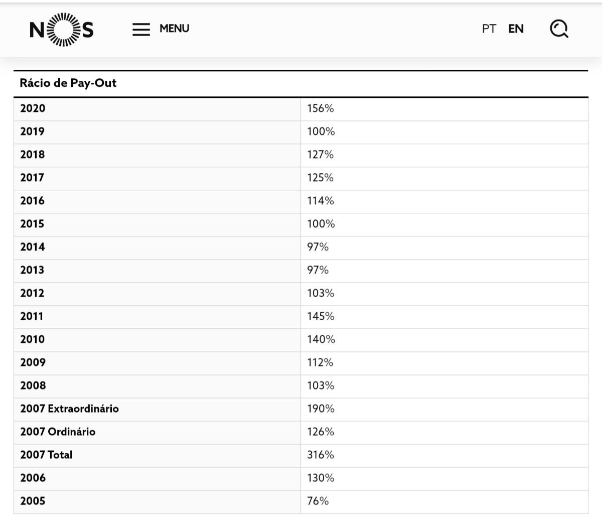 InvestingBerry Escreveu:Estou interessado na NOS mas não percebo como conseguem payout ratios acima dos 100% tão frequentemente?