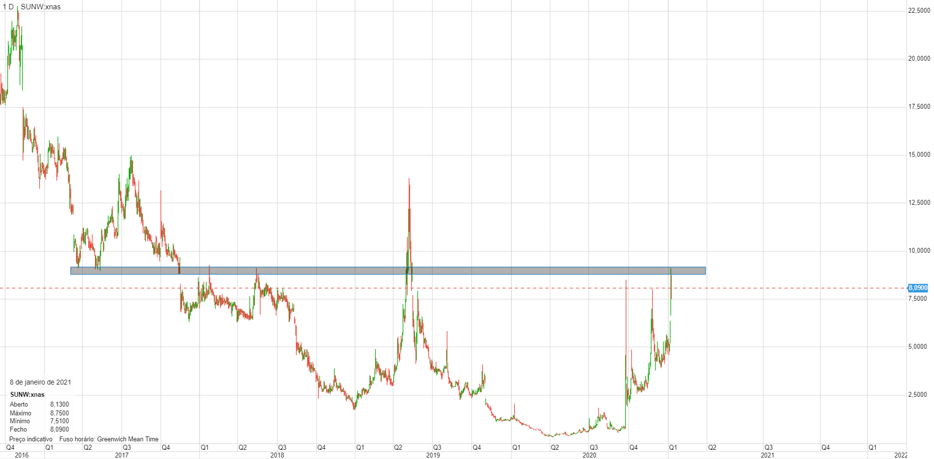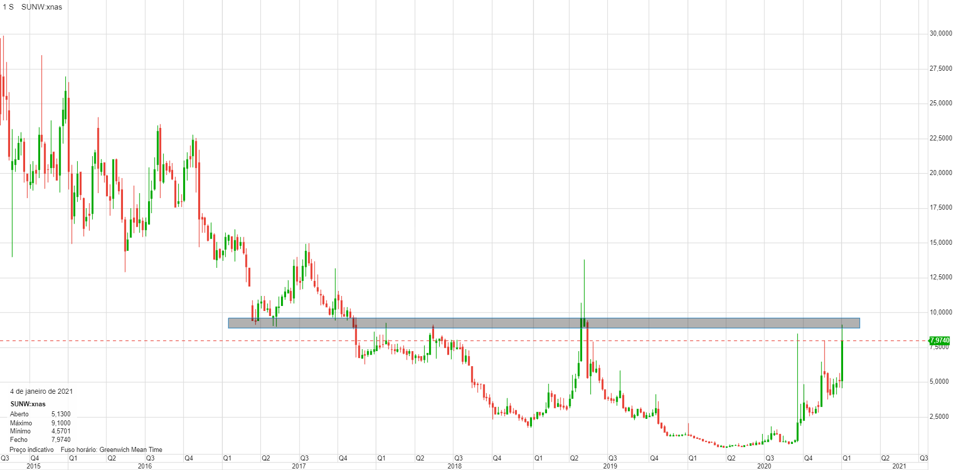 PS: a grande oscilação da Sunworks poderá estar ligada a compras dos shortsellers. Por isso talvez fosse mais avisado vender e colocar-se como comprador amanhã, se ela cair como eu suponho que vá acontecer.