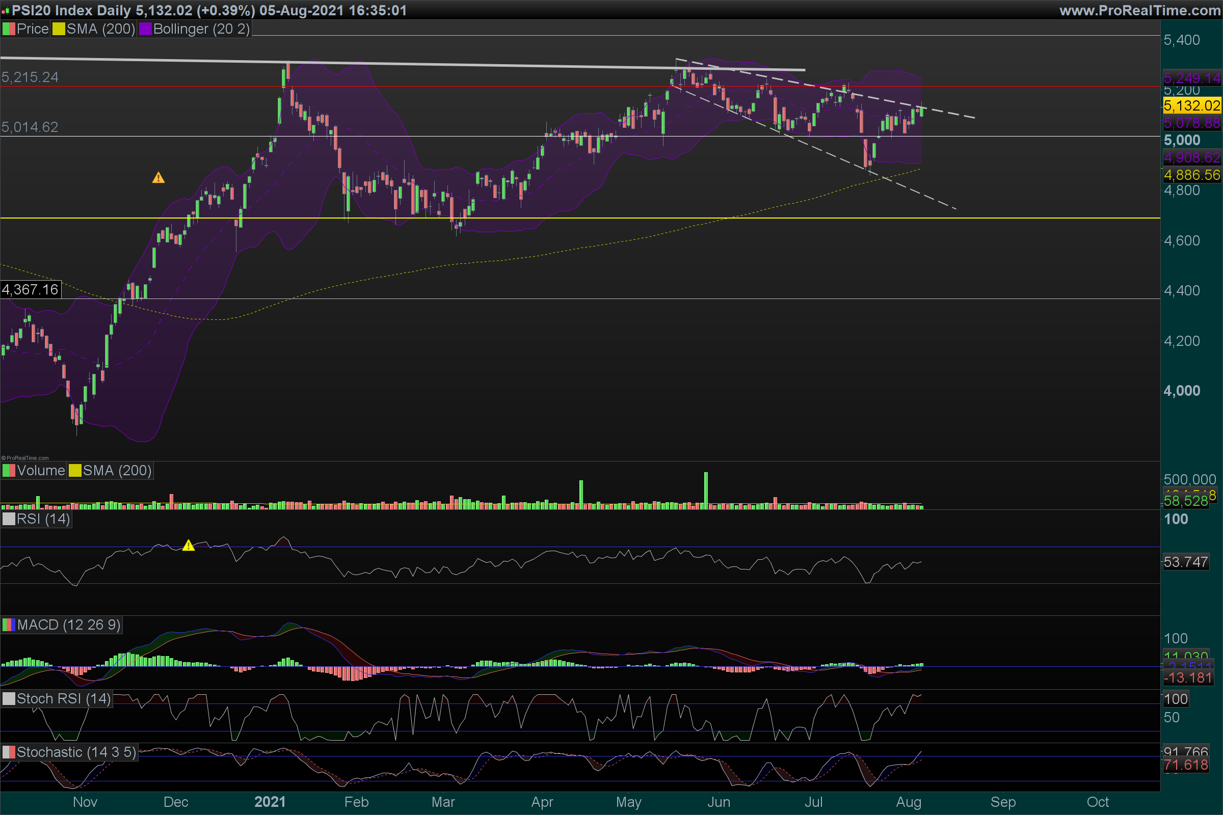 O PSI aproxima-se de uma resistência importante. Se for quebrada tem uma projeção tremenda acima de 6 mil pontos (ou serei eu a imaginar coisas?)