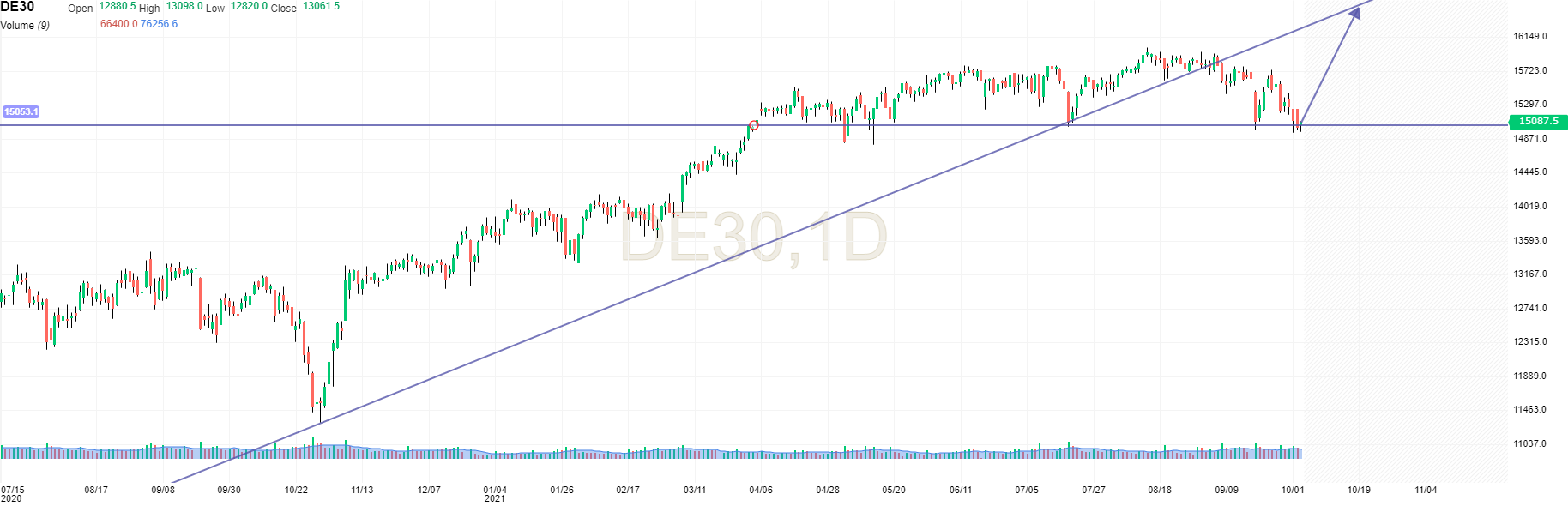 Os 15400 ontem não aguentaram mas hoje tenta fazer o reteste. Para já apenas reteste…
