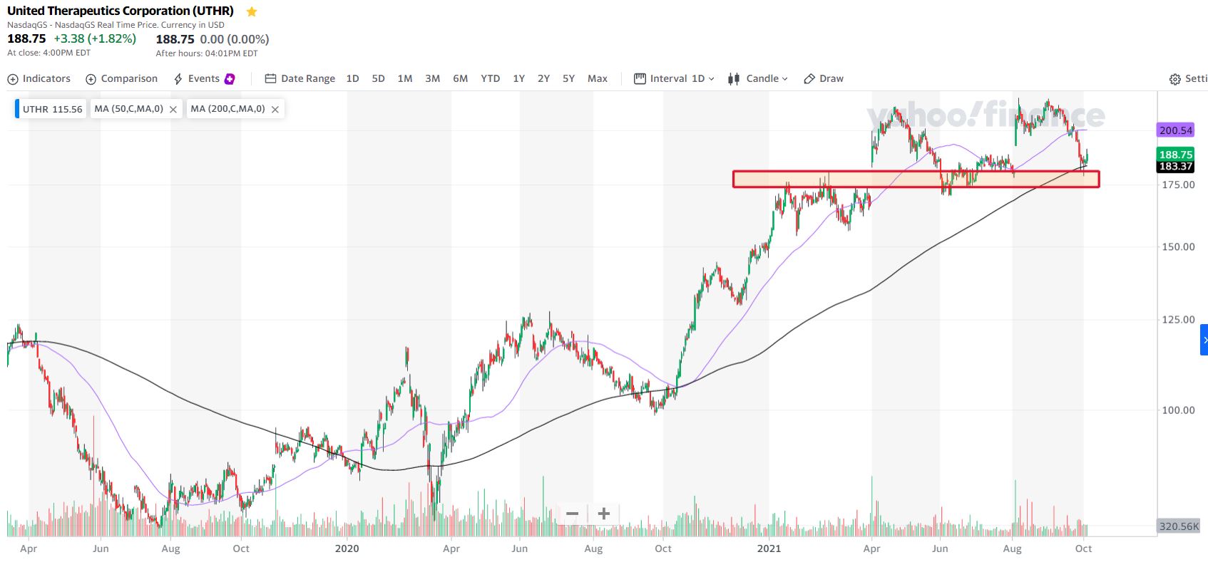 Entrada na UTHR hoje, com boa pinta e para (idealmente) fazer um swing trade.