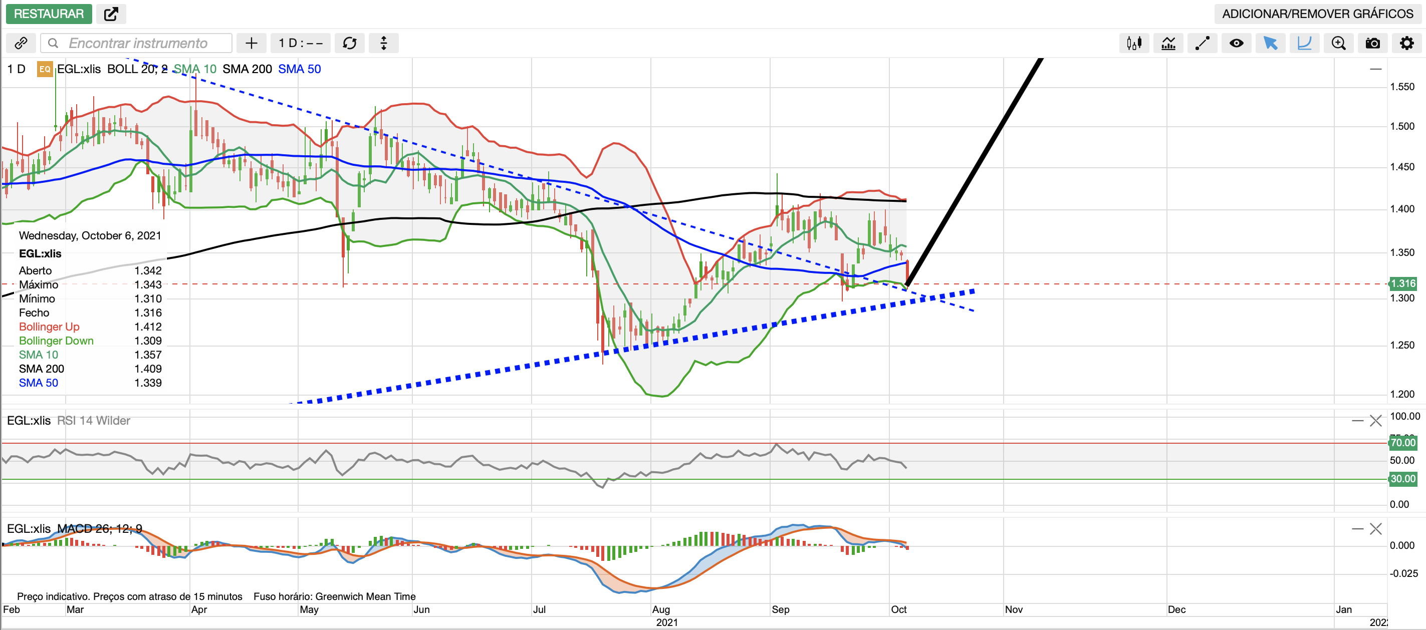 sem quebrar em alta a SMA50, ultrapassando a resistência de curo prazo dos € 1,40, continuará o movimento de lateralização