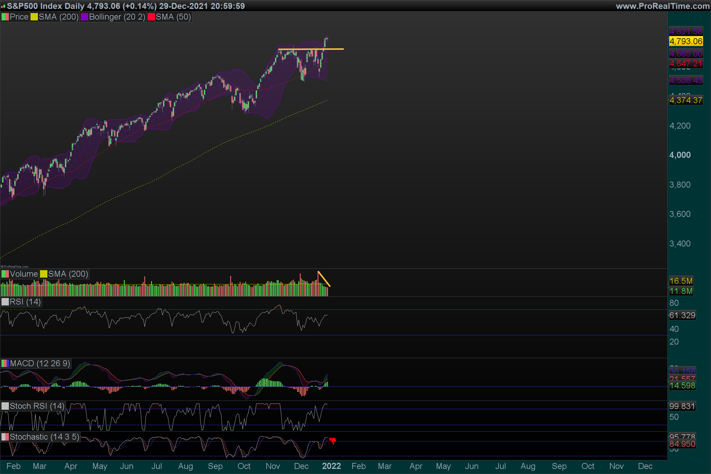 - média móvel exponencial dos 50 dias nos 4571.08 pts.