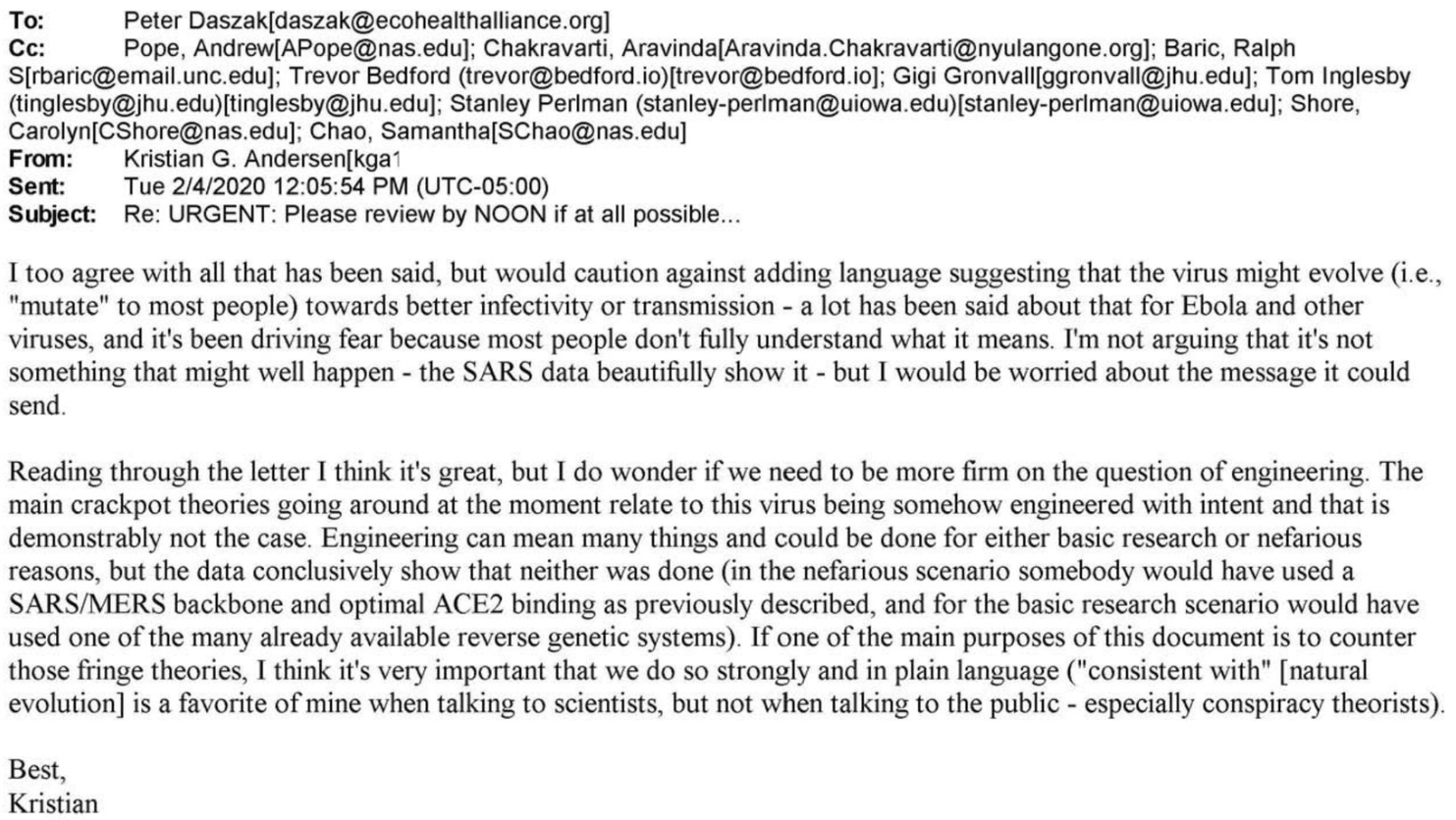 Aqui esta' um email do Andersen para o amigo Daszak: