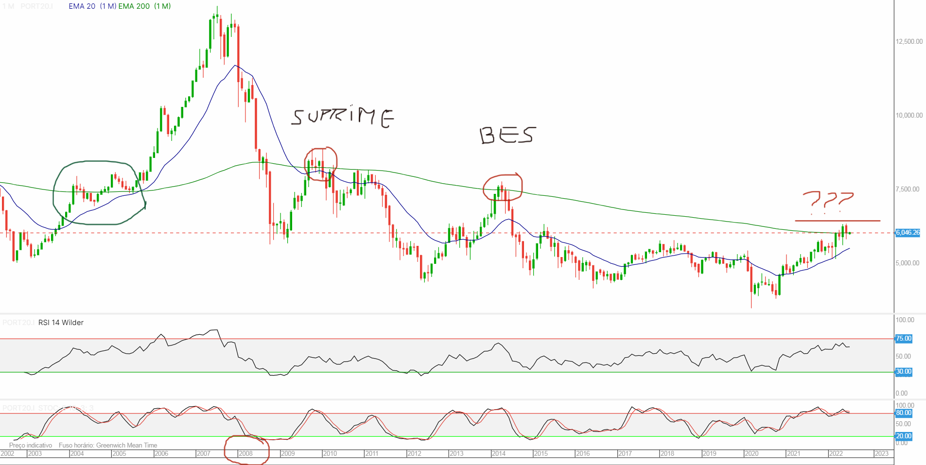 Mais uma vez, a média móvel de 200 meses parece travar o PSI.