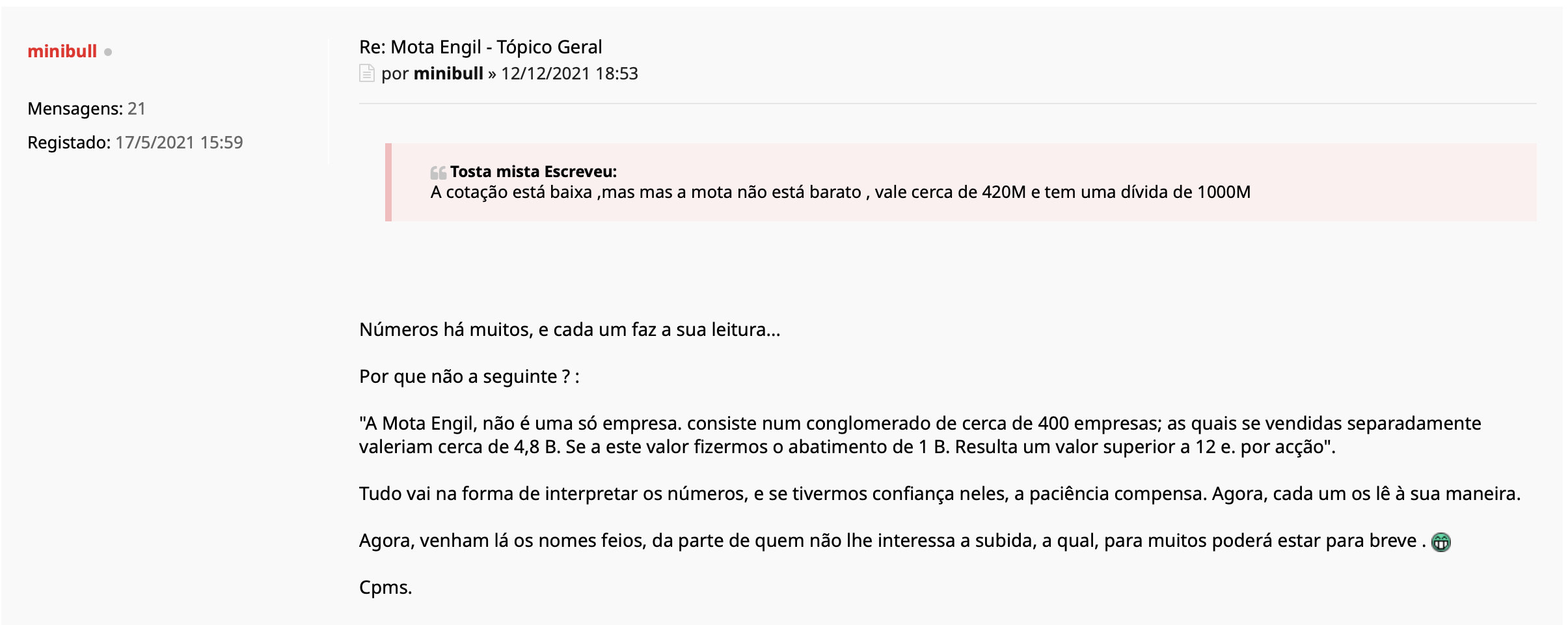 compreendo que para ti a mota seja um "conglomerado de contas 27 ruinosas" e um "cem número de projectos com margens nulas". :lol: