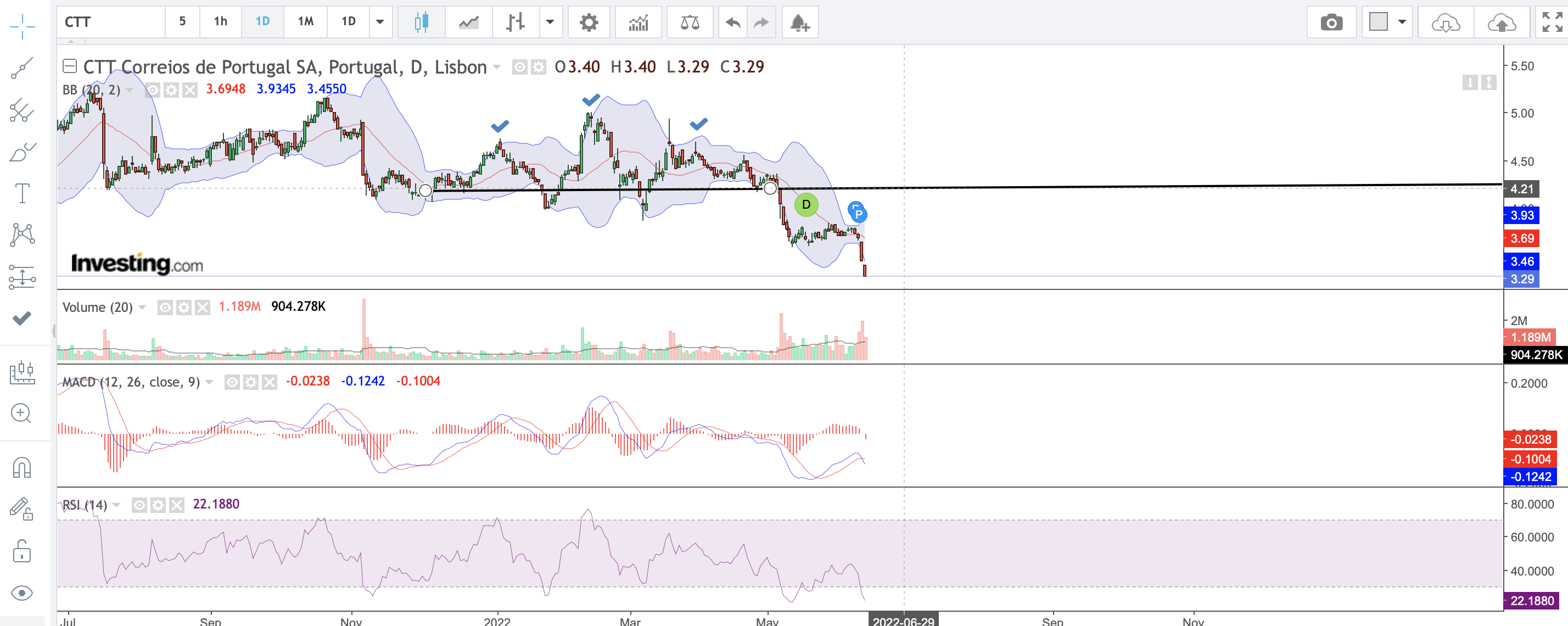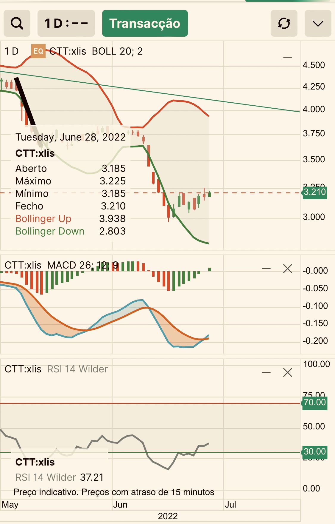 O bear market está instalado, por isso nada a fazer a não ser estar fora de todas as ações incluindo os CTT.