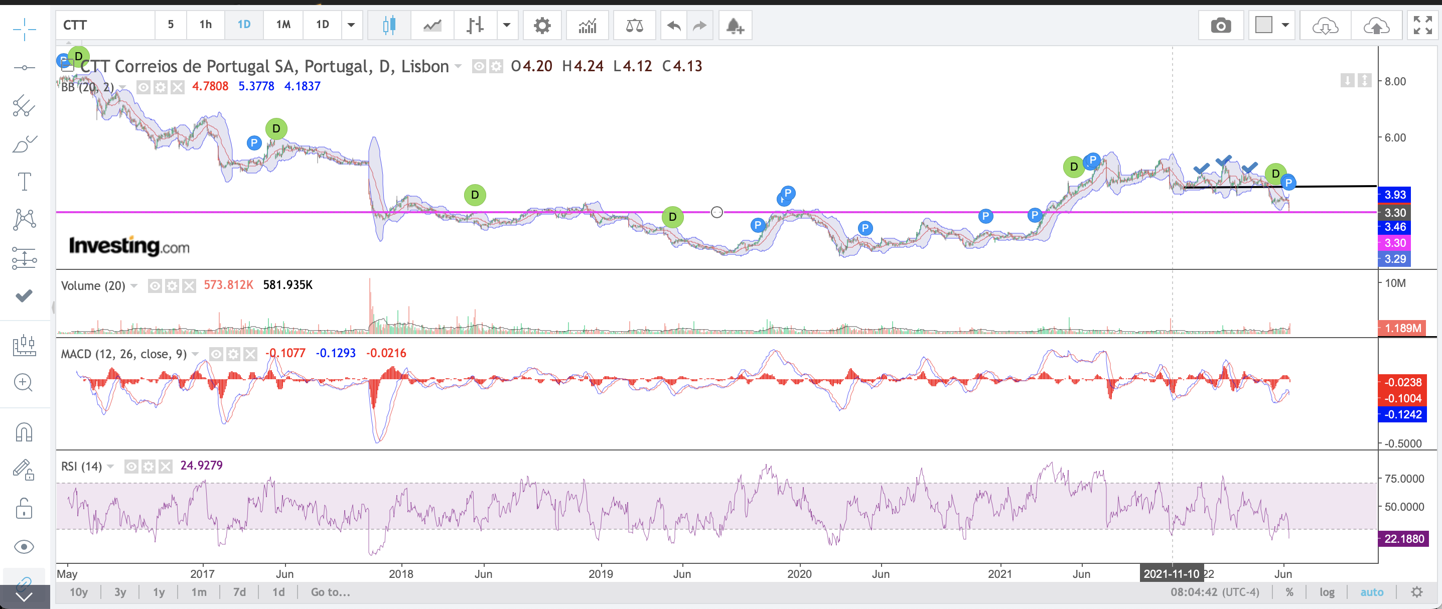 retomando os ctt, que têm em curso o plano de te-compra de acções, todavia, nestes últimos dias, de 17 a 22 de Junho não compraram nada :mrgreen: