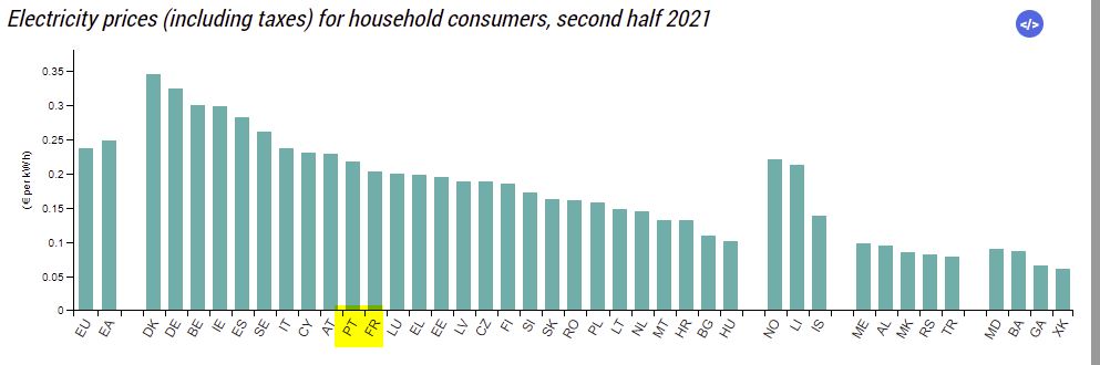 Em PT a eletricidade é mais cara do que na FR apesar de ter um poder de compra consideravelmente inferior.