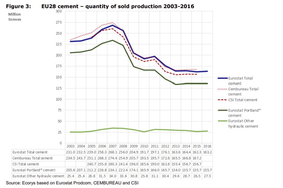 European cement association, which estimates EU28 cement production at 167 million tonnes in