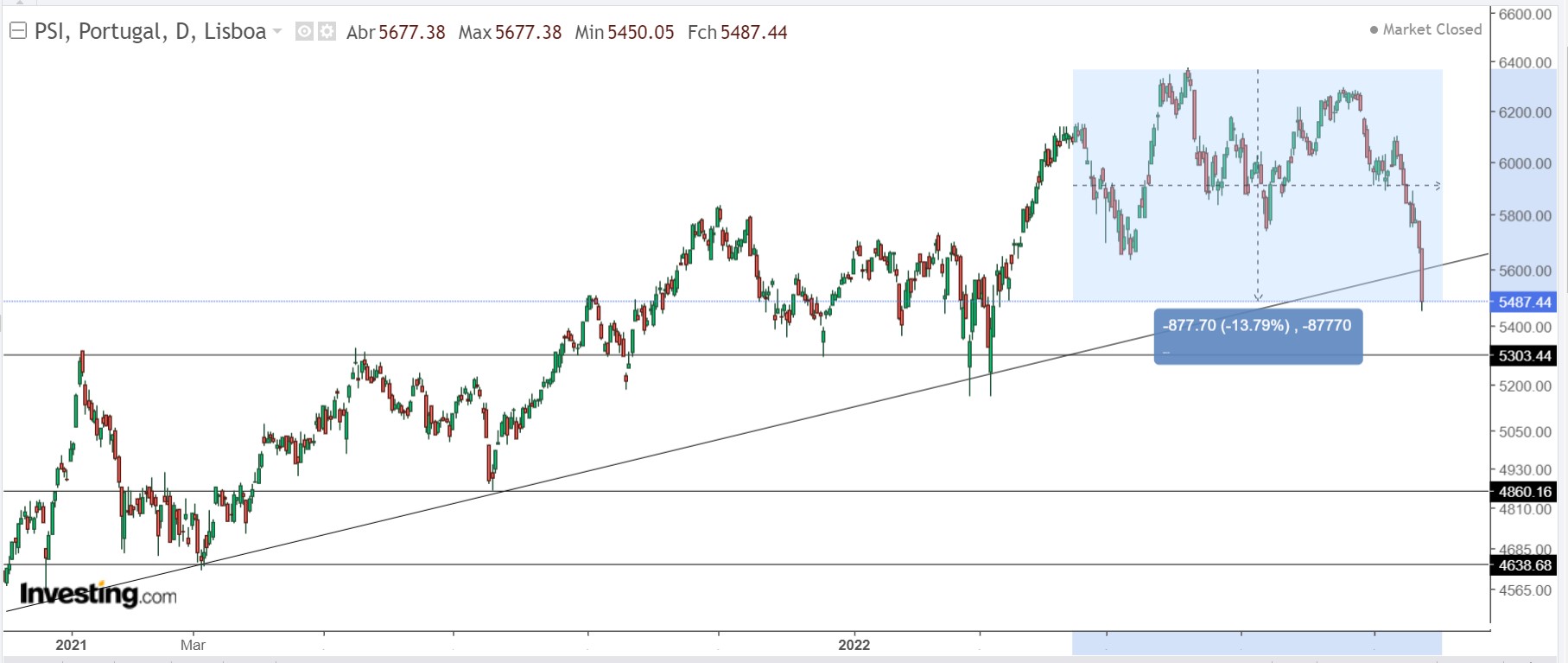 E lá continua o psi arrastado pelo sentimento negativo nos mercados, potenciado pelas subidas dos juros dos bancos centrais FED e BCE.