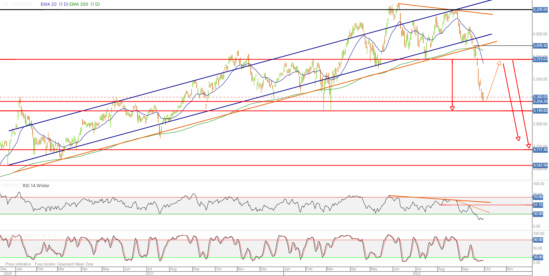 Apesar do Psi20 não ter sequer quebrado suportes importantes e tendo "apenas" caído cerca de 14% desde o seu ultimo máximo relativo, passei a estar pessimista no médio prazo, pelo que observo no mensal.