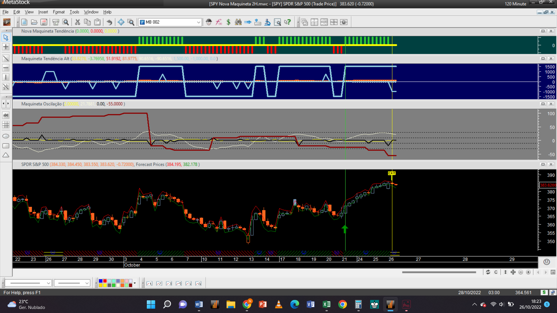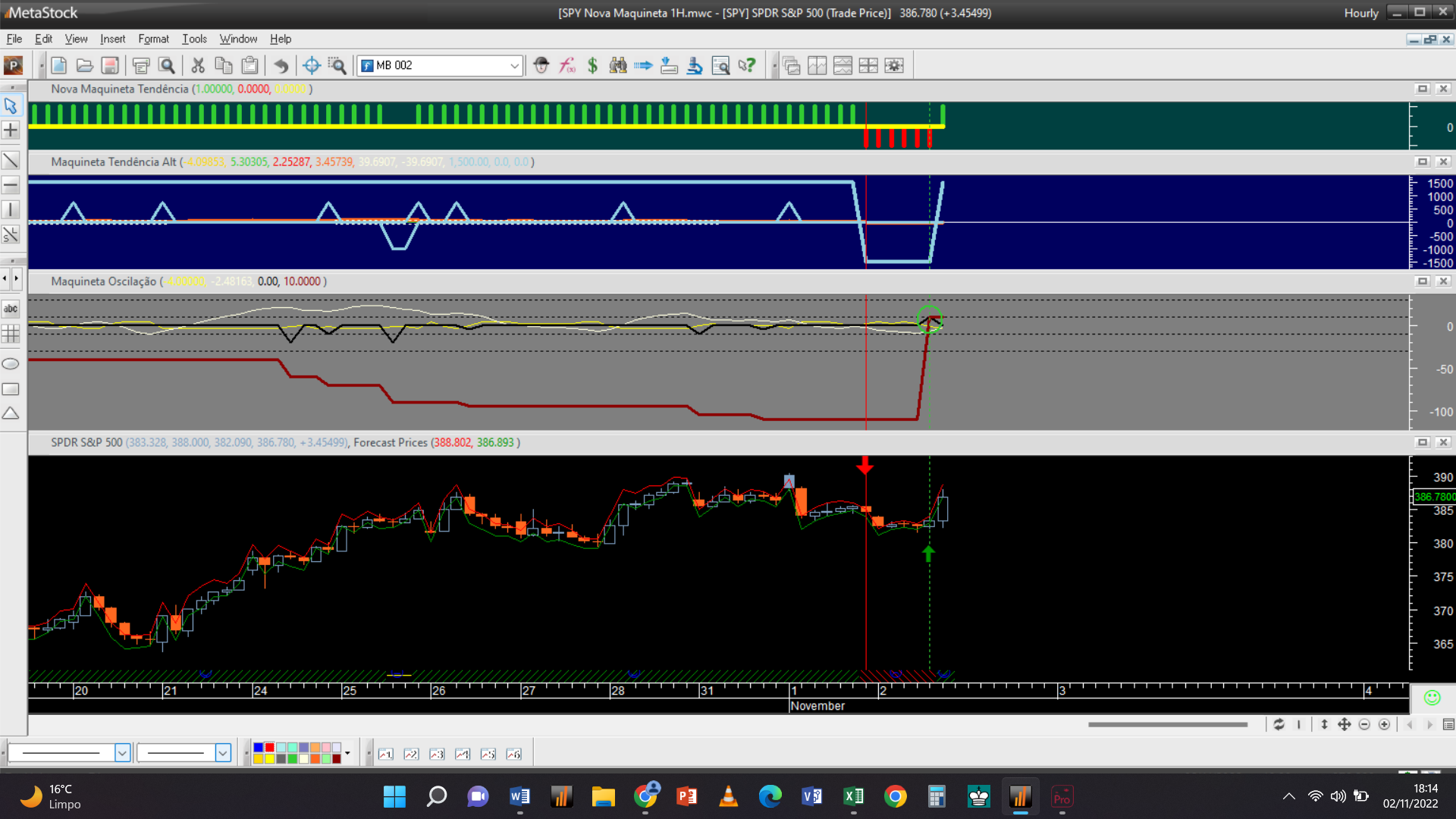 Sobre a possibilidade de deixar a informação sobre o posicionamento nas escalas maiores, tal poderia não passar duma mera curiosidade estatística porque, na minha verdadeira carteira pessoal, o S&P 500 depende mais de outros indicadores de diferentes sistemas de trading do que deste posicionamento relativo à “Nova Maquineta”. Mas irei pensar se vale a pena ou se poderá ser útil deixar aqui esses gráficos.