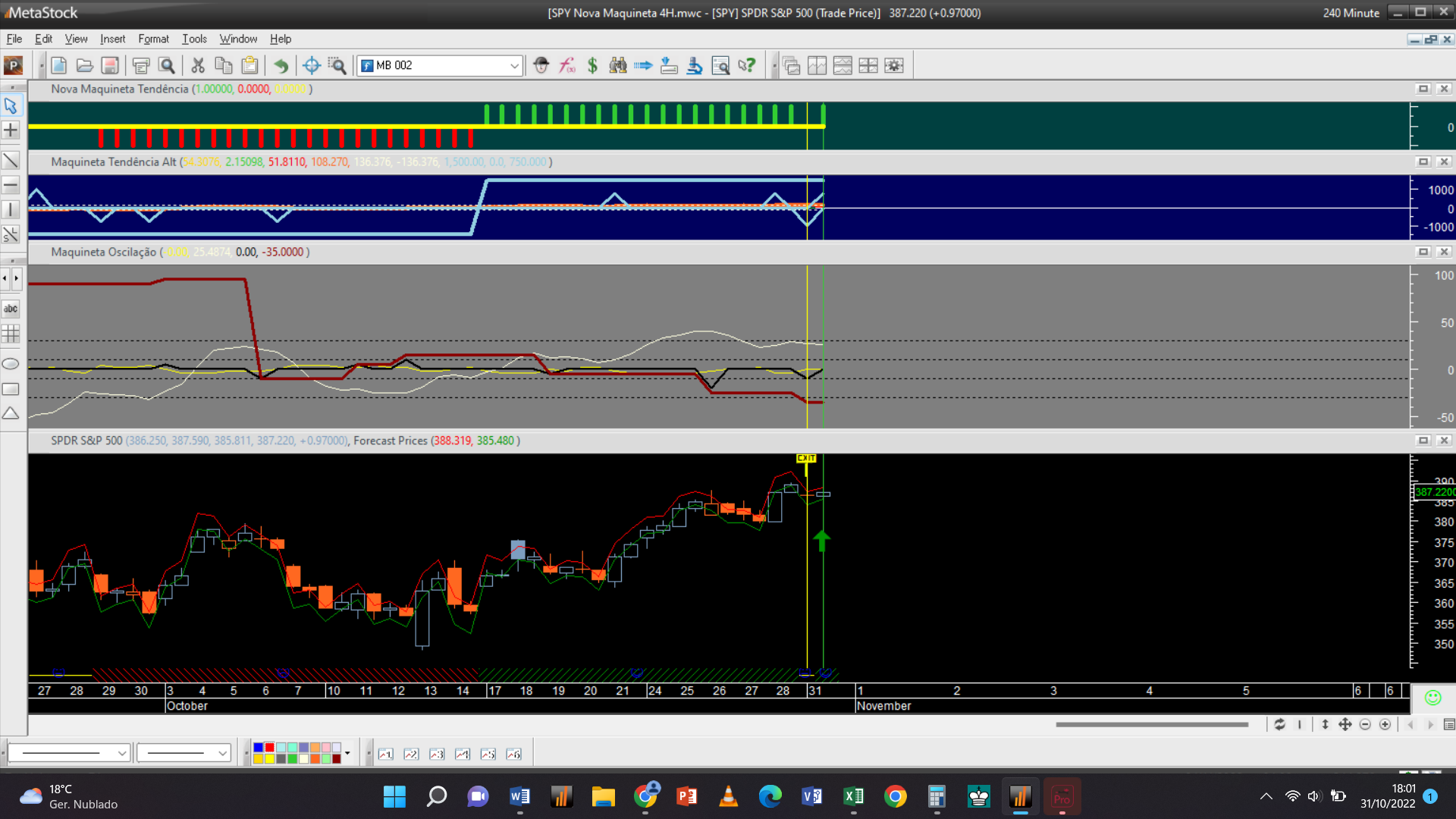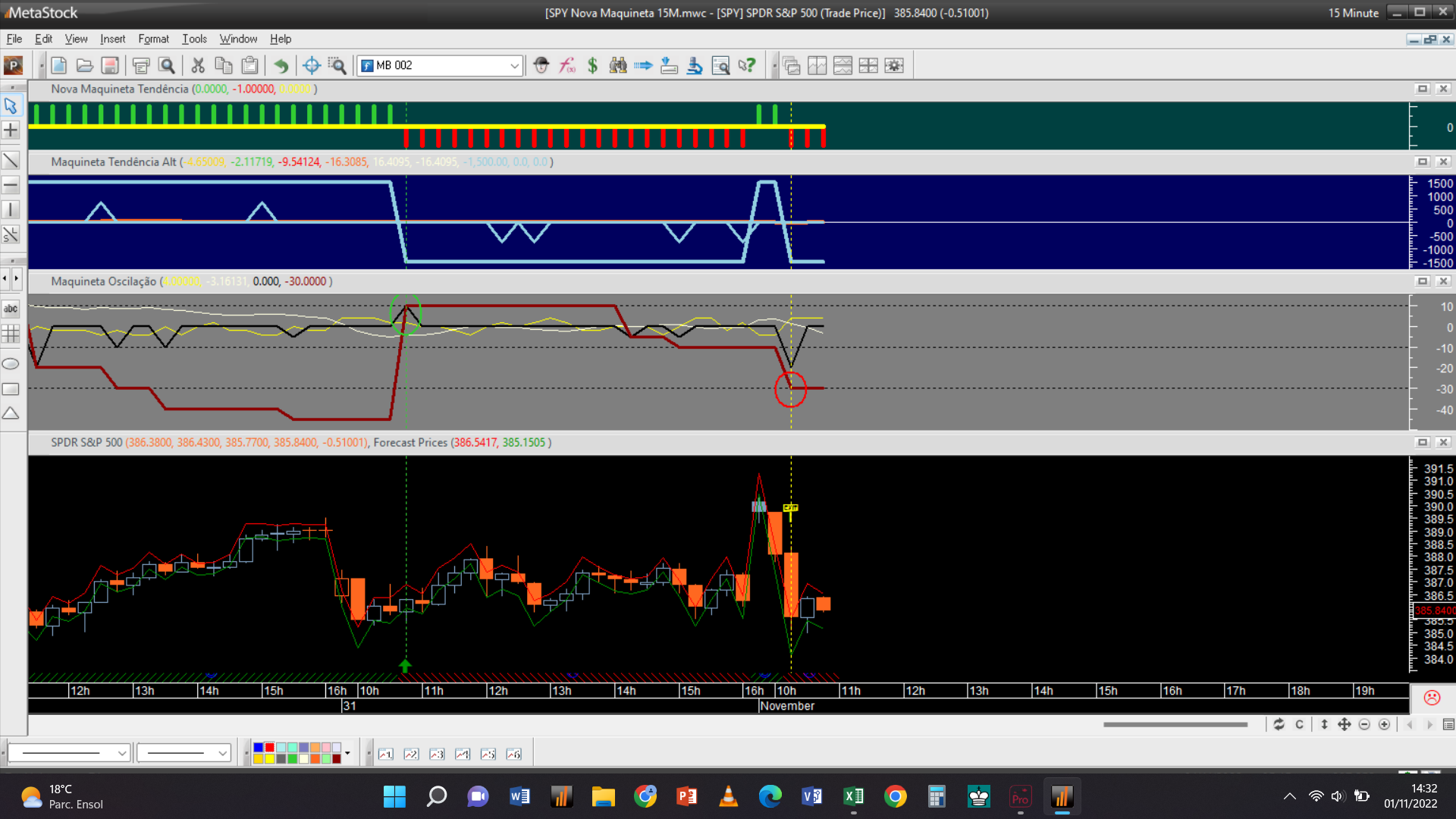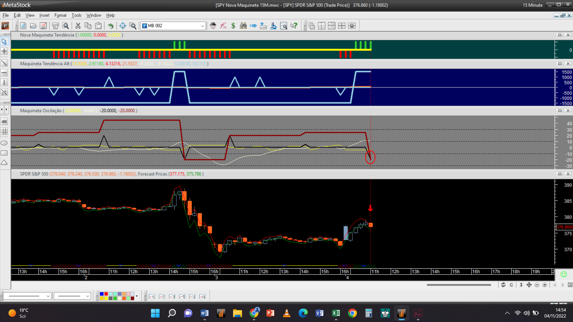 O primeiro sinal do dia registou-se no gráfico da escala mais baixa dos 15 minutos, com uma venda executada às 15h 01m para abertura duma posição curta oscilatória ao preço limite de 3780 Usd / contrato.