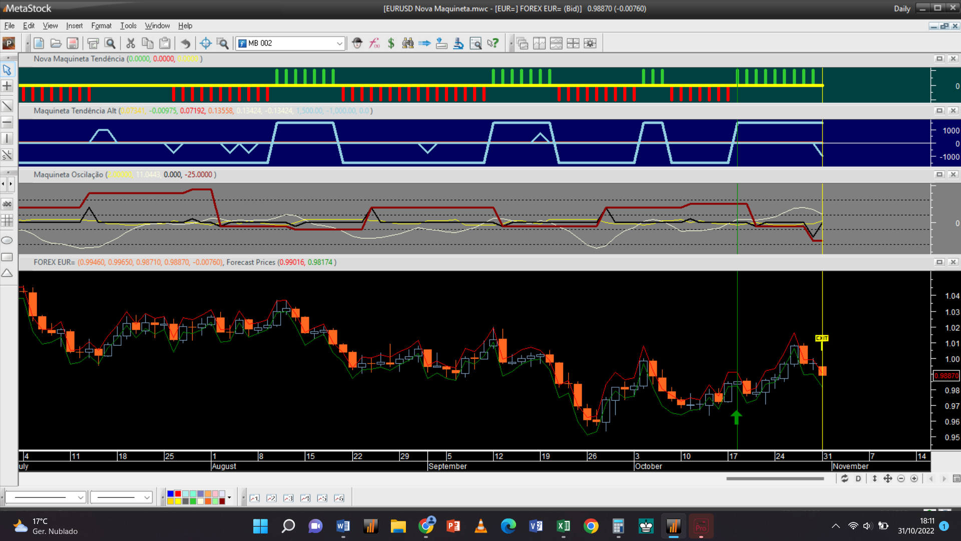 O programa acabou também de dar um sinal na escala diária do EuroDollar, interrompendo a tendência ascendente para neutral.