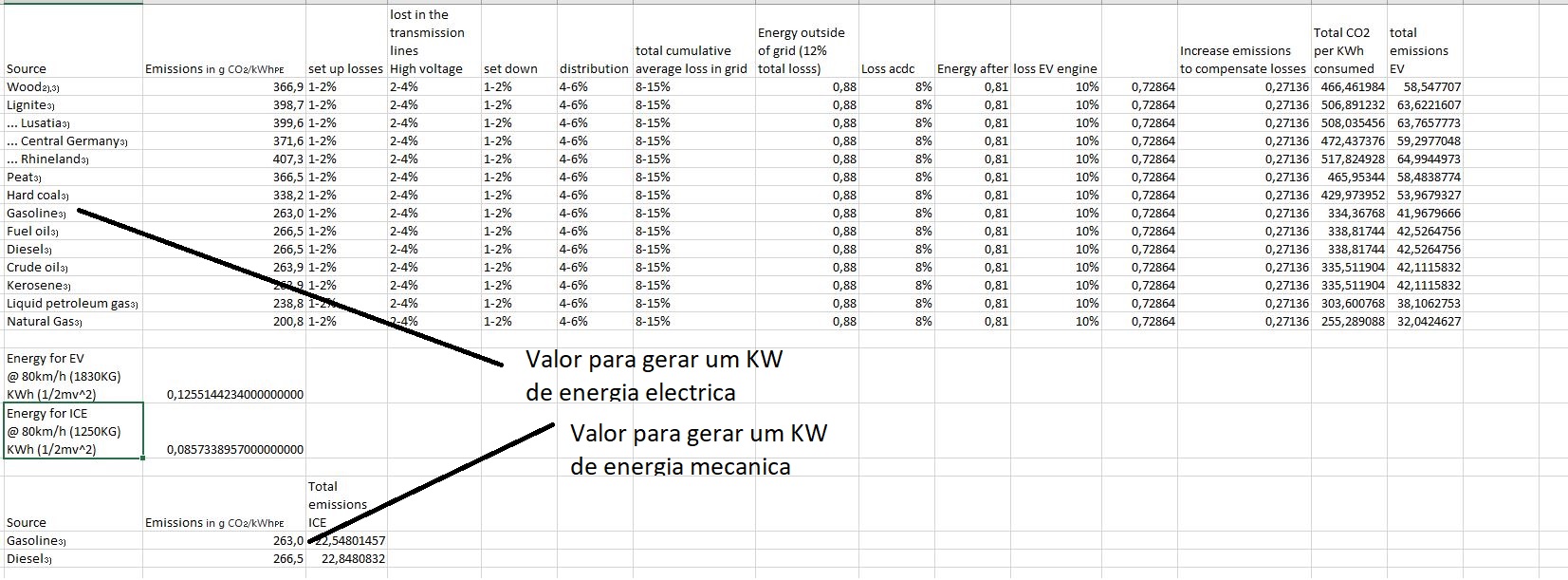 Eu assumi que o motor do ICE tinha o mesmo desempenho que o motor de um gerador de eletricidade numa central. Repara que os valores de emissões são exactamente os mesmos.