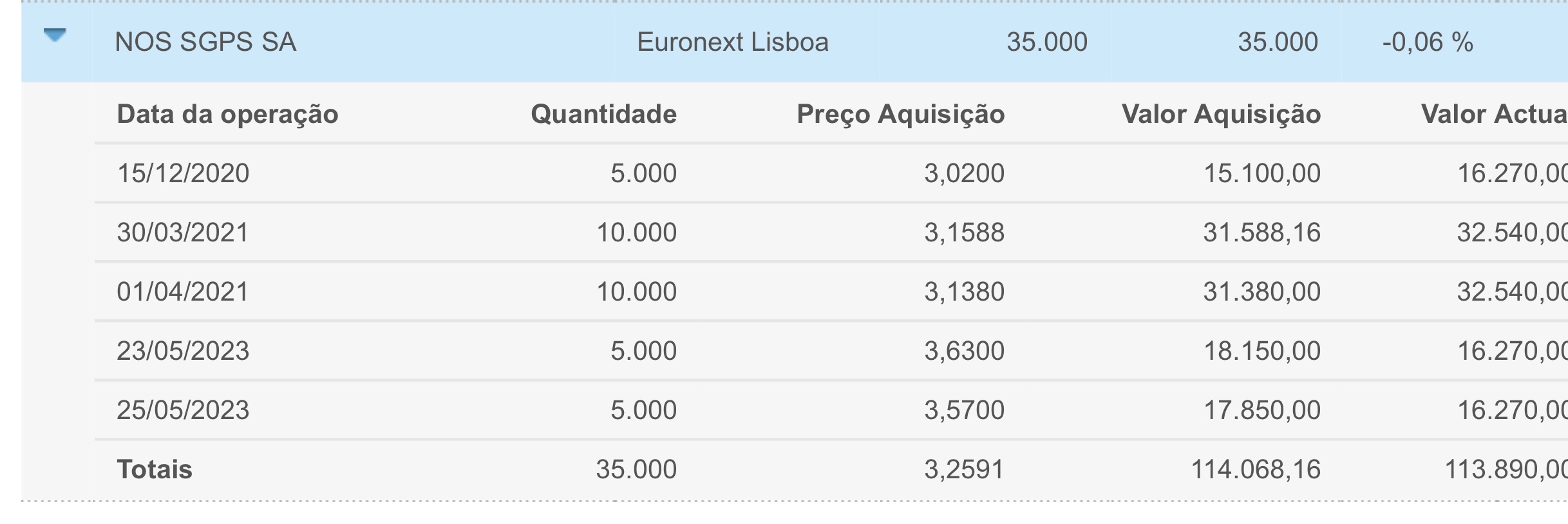 entrada com uma posição bastante generosa, onde a carteira inicial eram até ontem de 4000 unidades, passando com a aquisição de hoje, a multiplicar-se por 4.