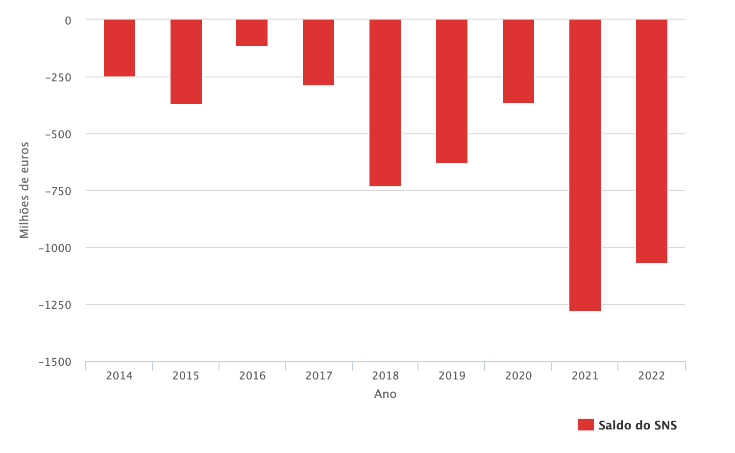 Por outro lado, o buraco do SNS disparou. Em 2021 e 2022 o buraco foi superior a 1250 milhões e 1000 milhões de euros respectivamente. É caso para perguntar, o que é que o governo anda a fazer.