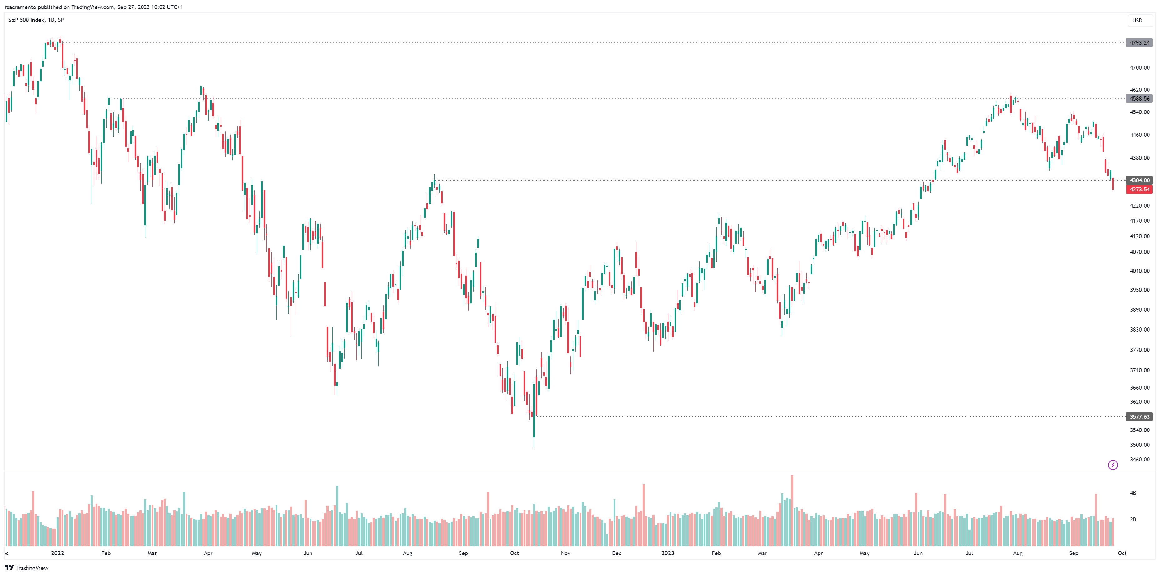 Quebra do suporte e ida ao objetivo. Agora haverá uma reação, mas chegados a 4350 os ursos podrão de novo mostrar as suas garras. Esta quebra é para mim um sinal baixista.