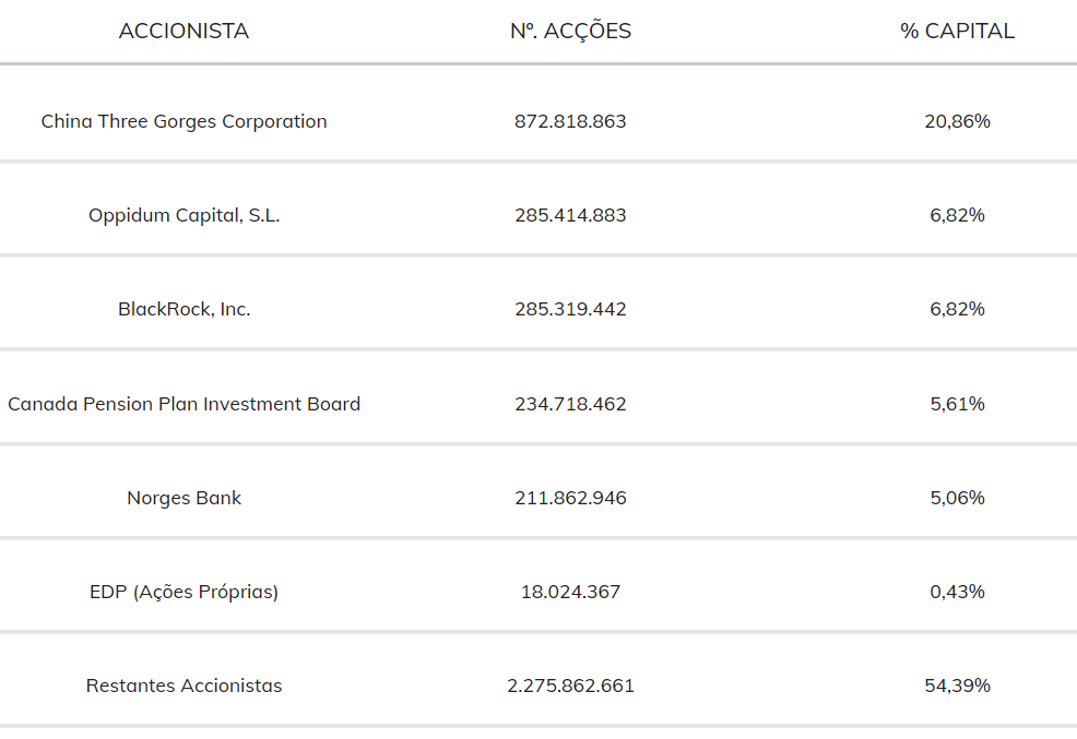 Ao dia de hoje os maiores acionistas são: