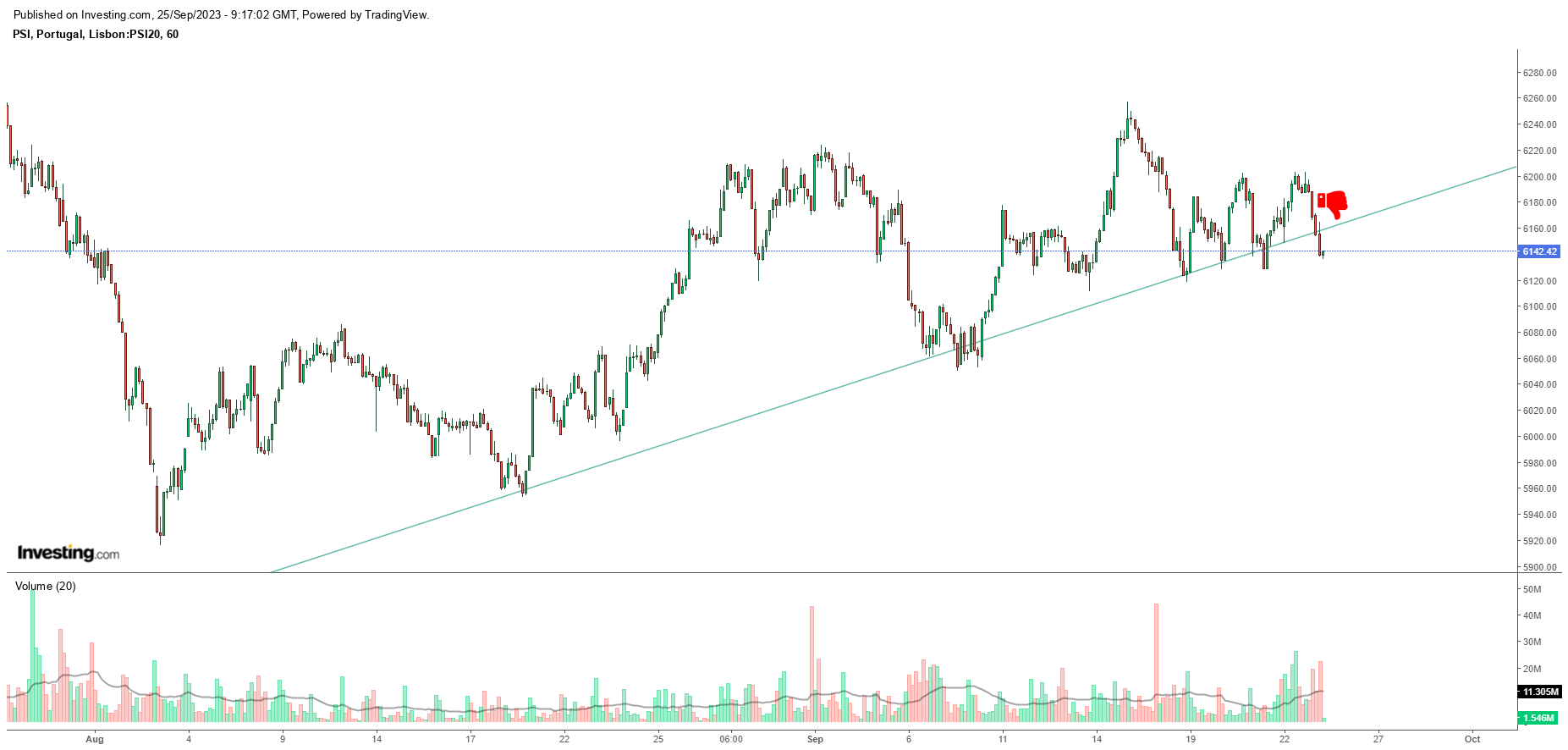 O fim de mês aproxima-se e o PSI está já encostadinho à LTA e apesar do BCP e a força da banca dar algum suporte ao índice tenho dúvidas que seja suficiente e disso é sinal todos os outros componentes estarem a mostrar quebra de suporte, a começar pelo setor elétrico.