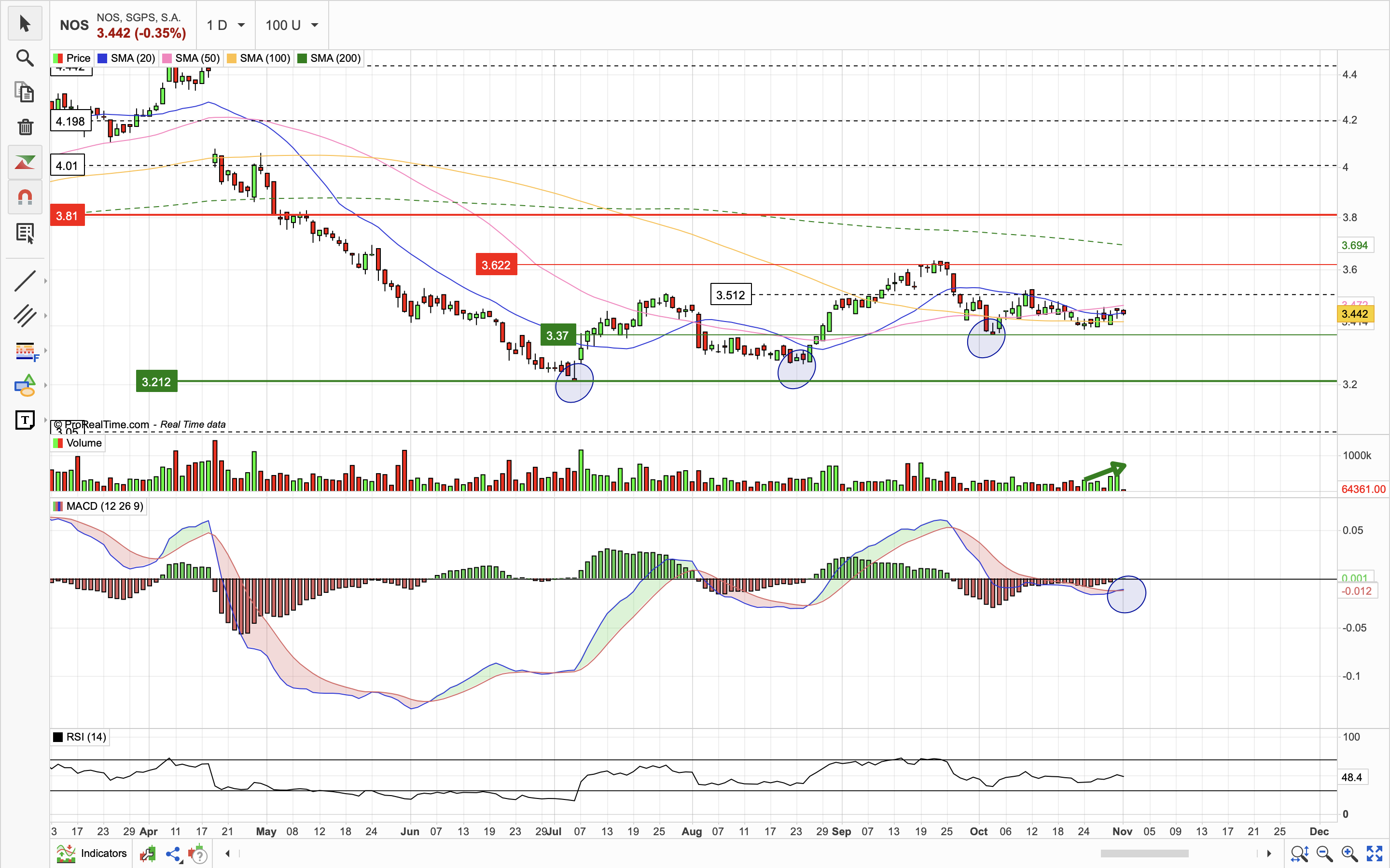 contudo, para aqueles que, tal como eu têm vindo a consolidar compras, com carteiras de activos em média €0,30 abaixo do preço que a sonaecom comprou a sua última tranche da NOS,” penso eu de que”estamos prontos para lá para o final do ano ver a NOS nos €4.