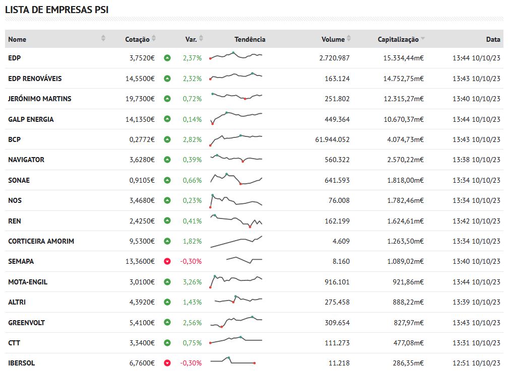 Portanto, a evoluçao do PSI depende do peso de cada uma delas em cada momento e infelizmente o peso do "BCP" representa apenas 16%