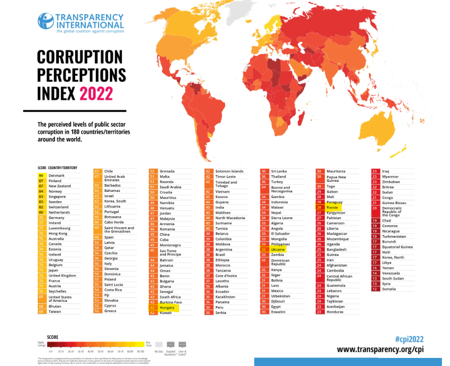 Que a Ucrânia infelizmente é um pais com um índice de corrupção alto, é uma realidade, já sabemos disso em geral, de acordo com o Índice de Percepção da Corrupção 2022, relatório publicado anualmente pela Transparency International.