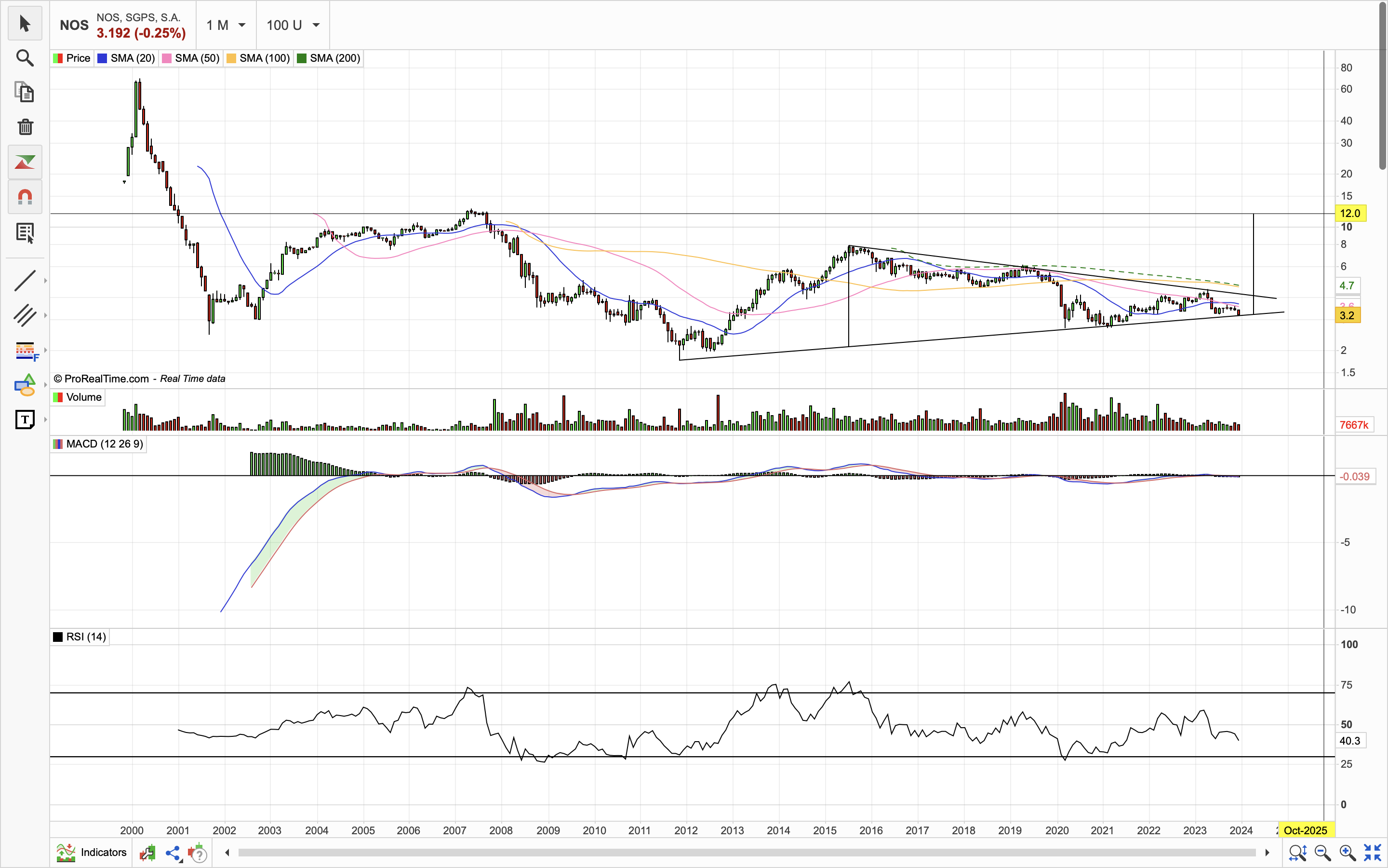 O aspecto técnico não é famoso mas ainda não quebrou o suporte, e aqui nos 3,20 funcionou como trampolim há muito pouco tempo para ida aos 3,70s . A Nos tem funcionado em contraciclo com o mercado, veremos se quando começar uma correção se mantém.