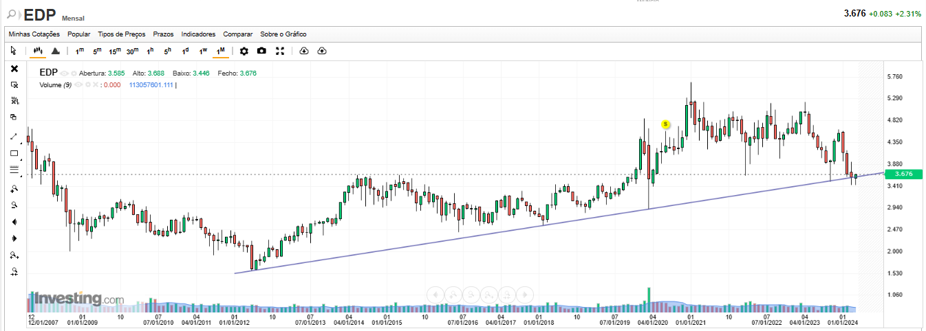 Eu estou com uma posição perdedora na EDP, mas com vontade de reforçar. Custa-me ver a EDP abaixo destes níveis. Embora o CEO ande pessimista e quando reverem e anunciarem os objectivos de crescimento o mercado pode voltar a penalizar