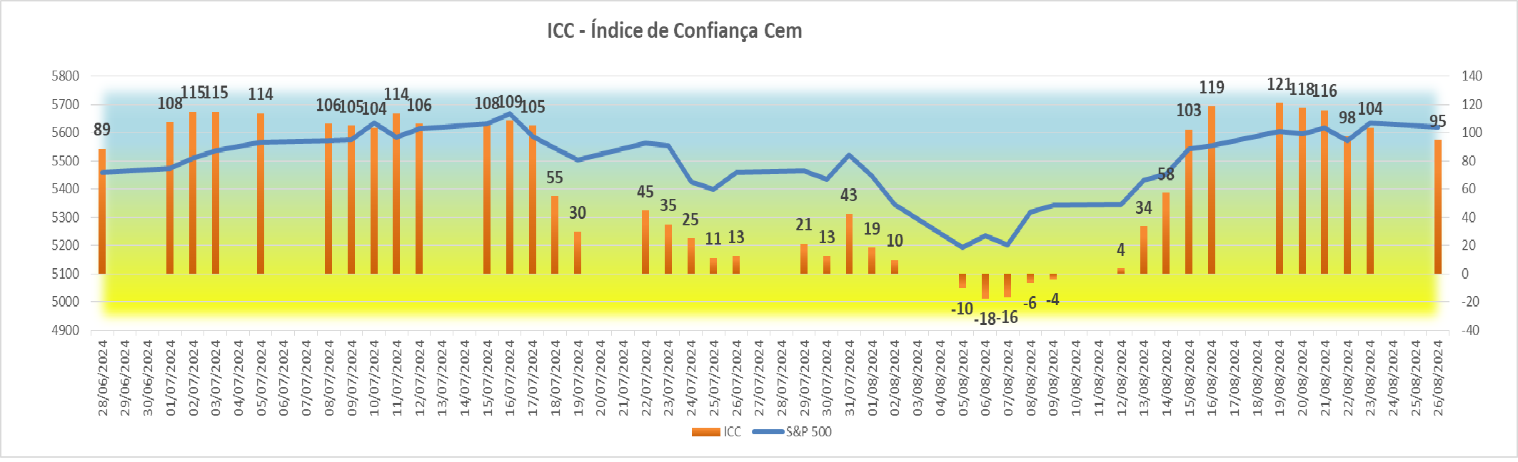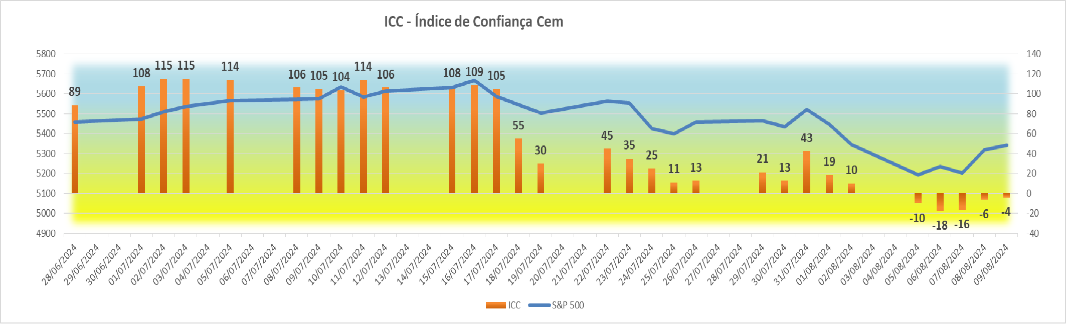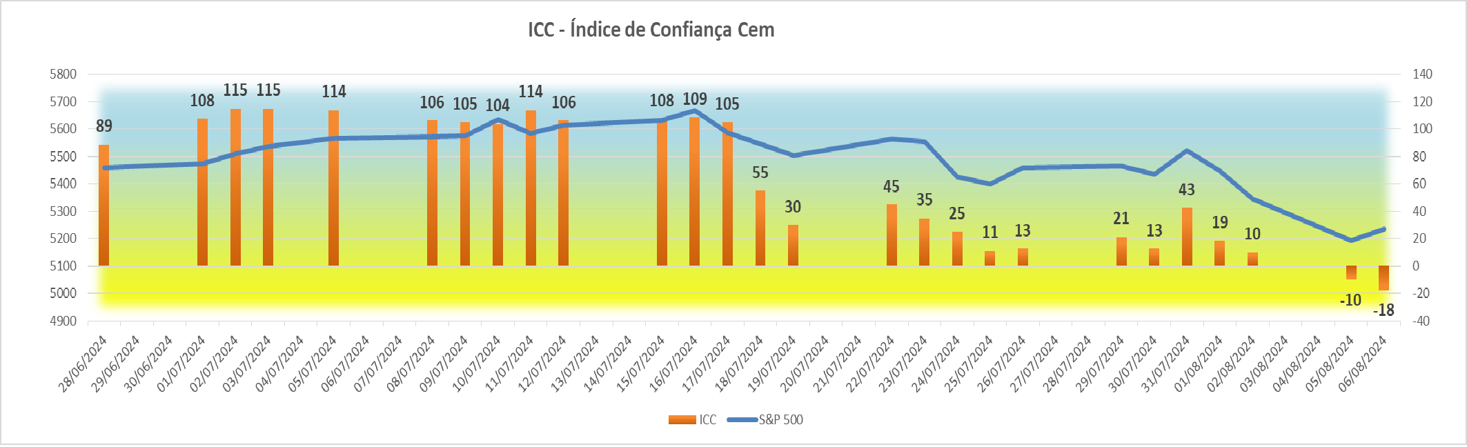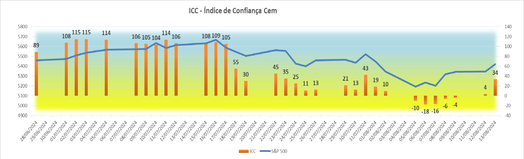 Esta subida agradável registada na sessão americana fez com que houvesse igualmente uma subida bem simpática no índice ICC, fazendo ascender o seu valor de +4 para +34 pontos.