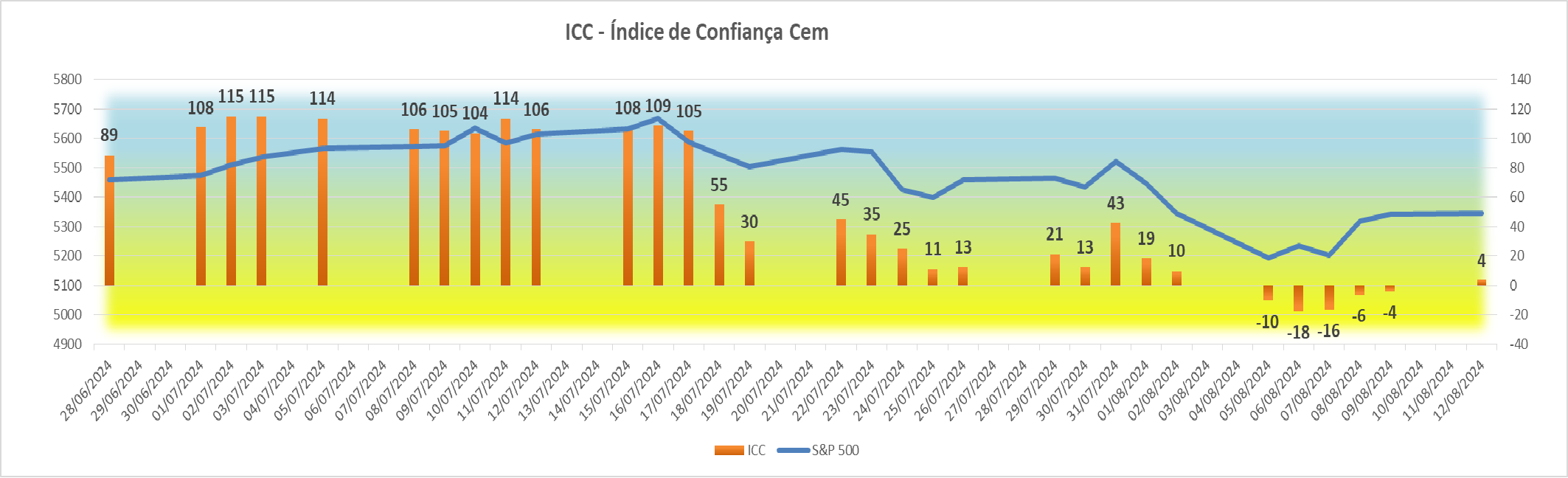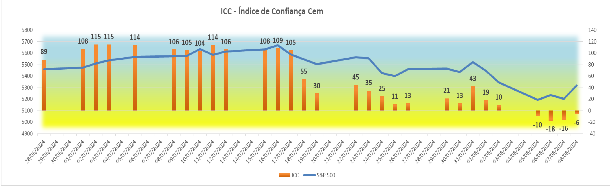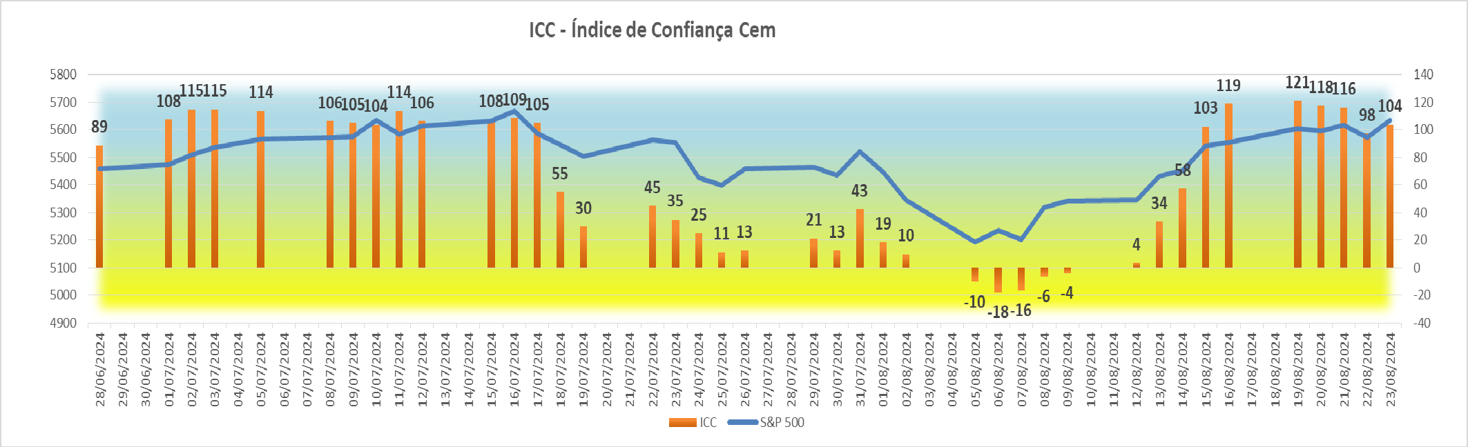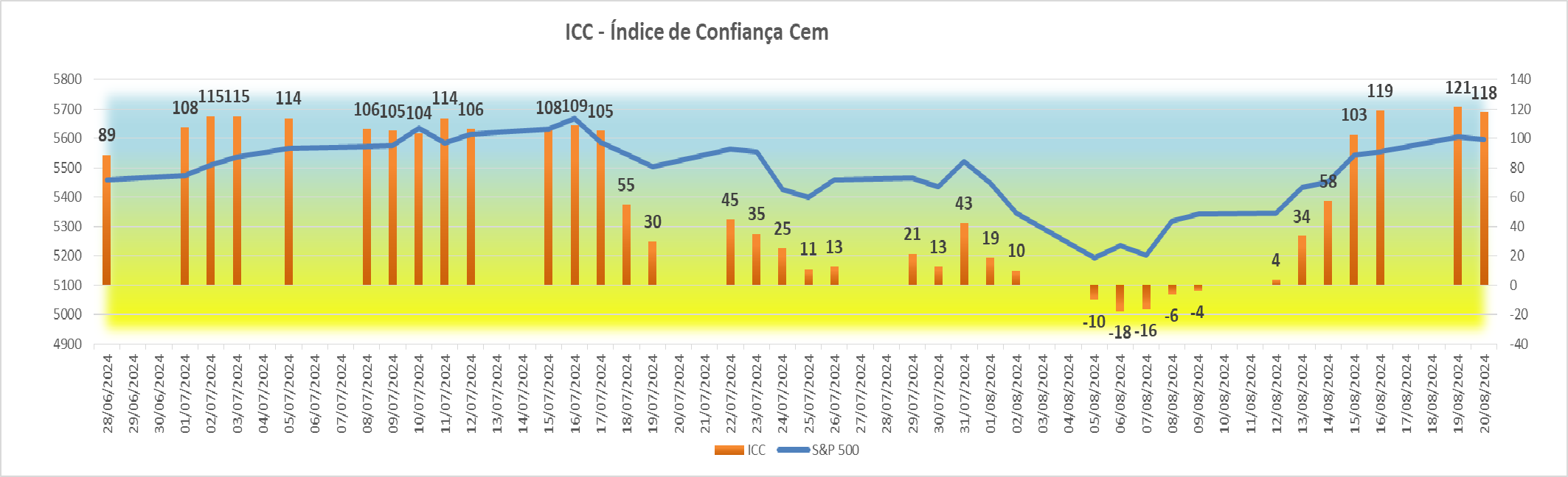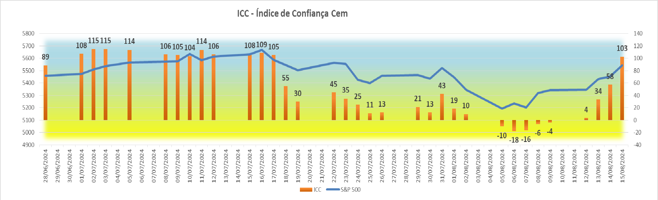 Esta subida agradável registada na sessão americana fez com que houvesse igualmente uma subida bem simpática no índice ICC, fazendo ascender o seu valor de +4 para +34 pontos.