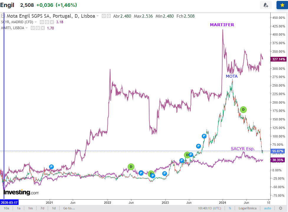 Caro Vale, pode incluir no seu gráfico também a empresa de construção Sacyr SA, só para comparar com uma empresa fora do universo Mota.
