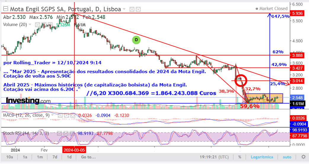 Mar 2025 - Apresentação dos resultados consolidados de 2024 da Mota Engil. Cotação de volta aos 5.90€