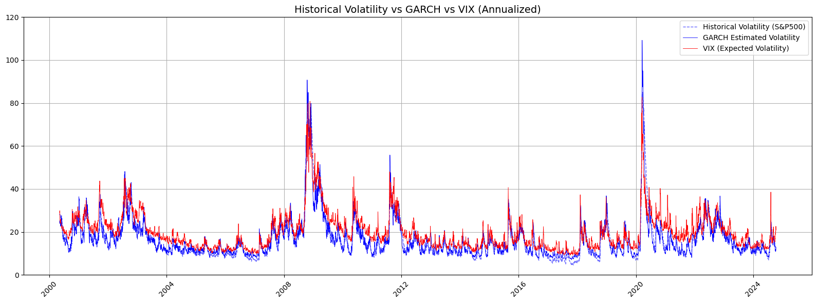 Mean Absolute Error between VIX and GARCH Estimate: 2.97%