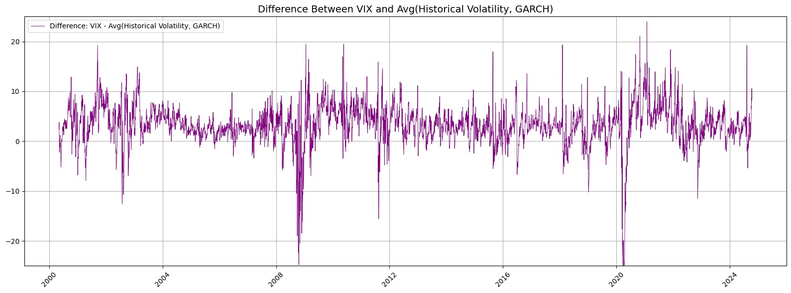 Mean Absolute Error between VIX and Historical Volatility: 4.25%
