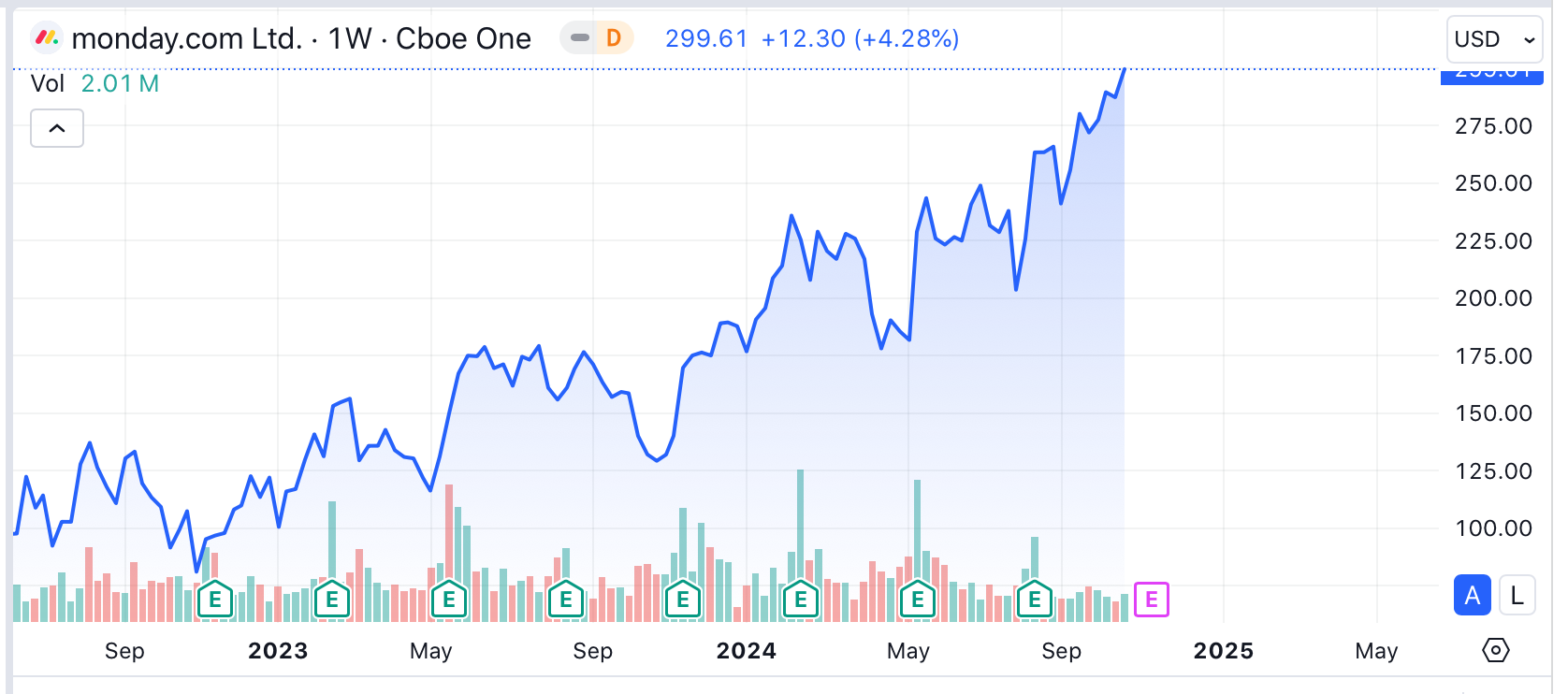 A empresa está cotada em bolsa desde finais de 2019. Entraram a $22 e no fim do primeiro dia em bolsa a cotação era de $35.50. A empresa passou por um período de grande investimento com crescimentos das receitas acima dos 100% YoY e a cotação ultrapassou os $300. A partir do final de 2021 com o aumento das taxas de juro o crescimento das receitas desceu acentuadamente e a cotação caiu gradualmente para valores próximos dos $50 a que está actualmente.