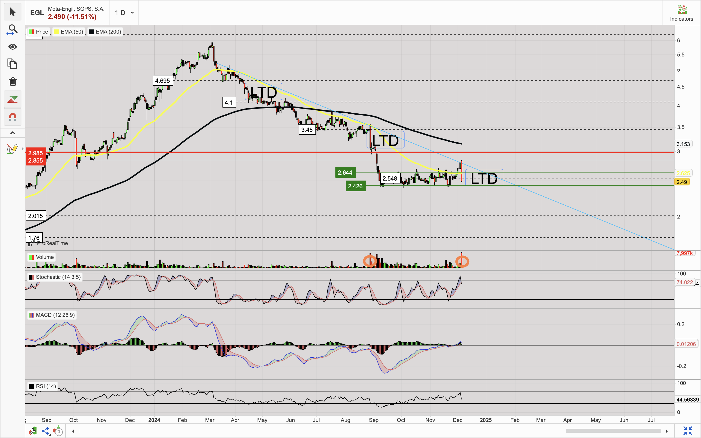 Voltou para o canal, só tem uma coisa a fazer, preservar os 2,40 nos próximos dias. Veremos se os compradores que lá estiveram estes meses continuam por lá.